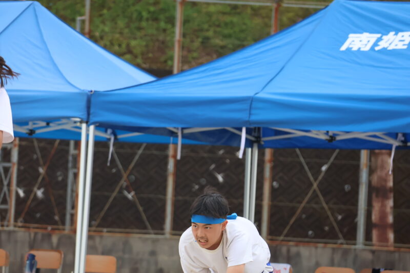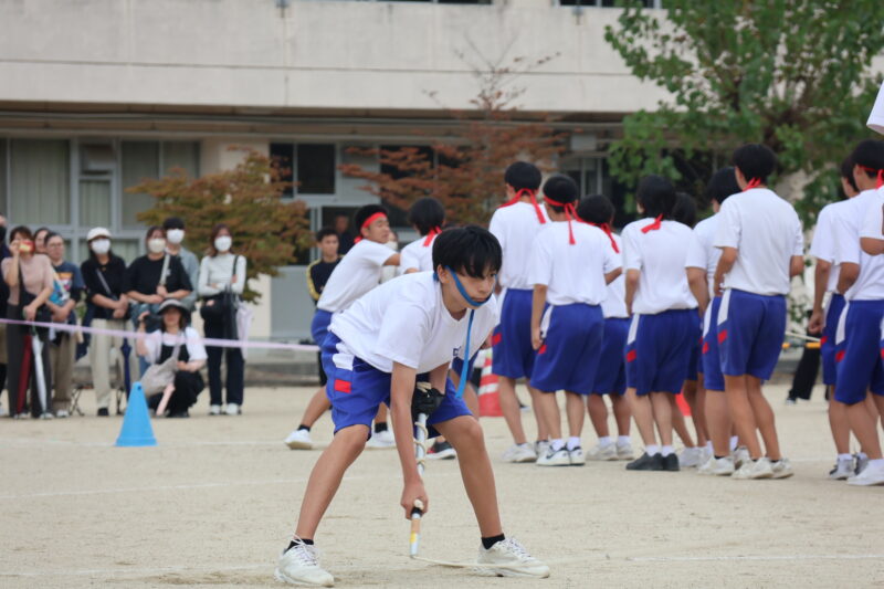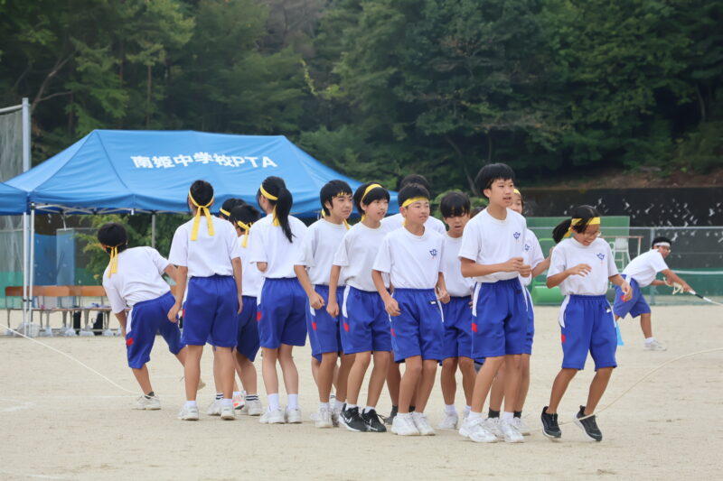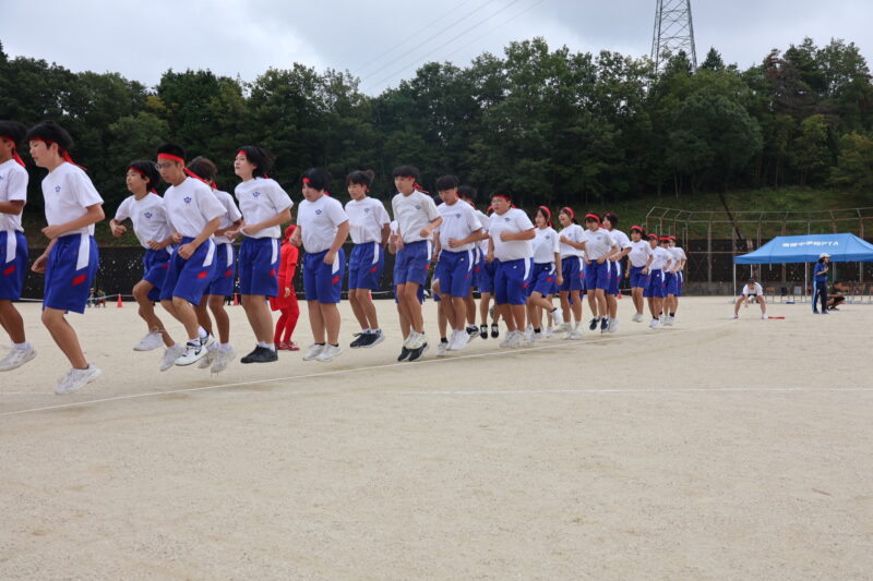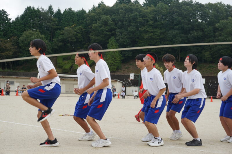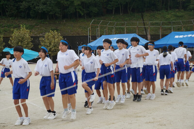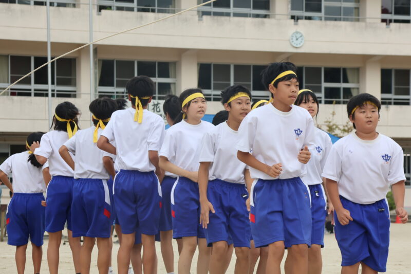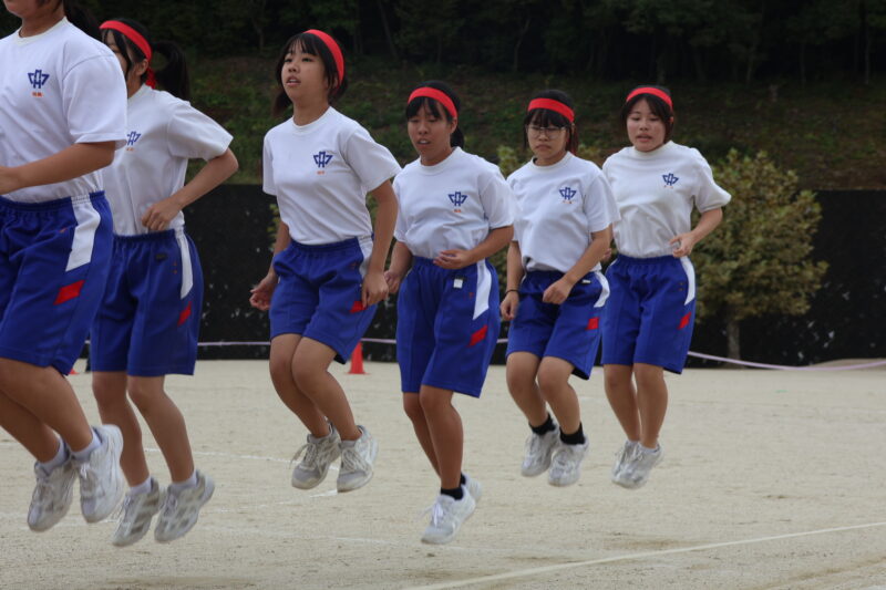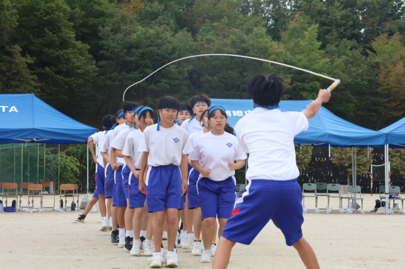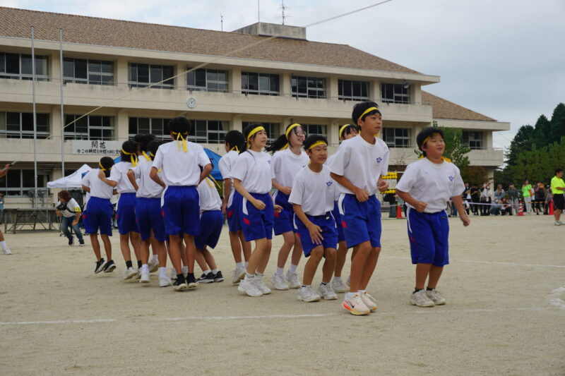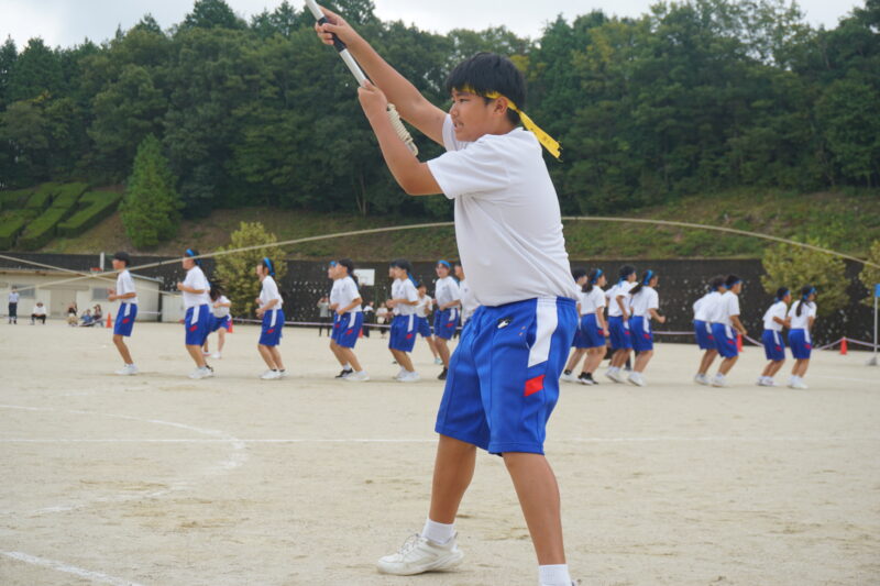 10月 03 2025 体育祭 part7:大縄跳び この種目は、学級で一番練習した全員参加の種目。 時間は、4分間。跳んだ回数と連続回数の合計で競われます。 心を一つに、リズムを合わせ、掛け声をかけて・・・。いざ! 跳び手と回し手が、精いっぱいの声と力を出して、必死に4分間をやり切りました。誰一人として力を抜かず・・・。 結果は、1位3年1組。みんな、学級が一つになったその瞬間は、とても眩しかった!