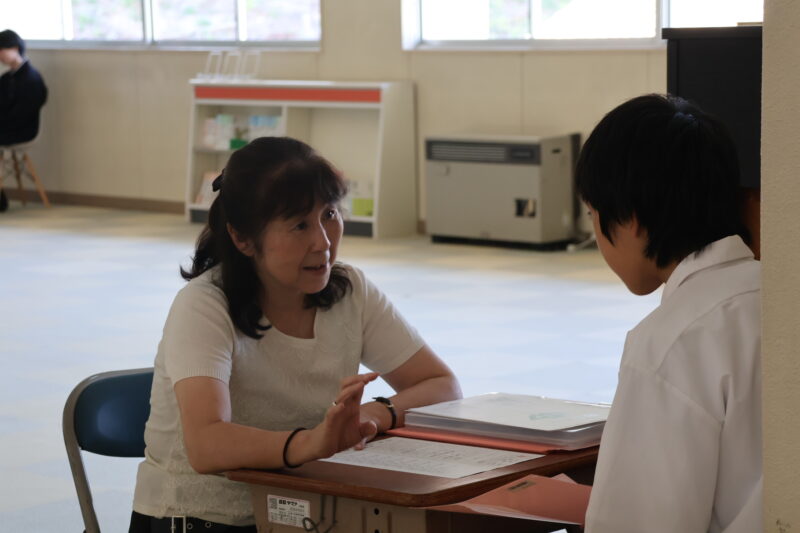 前期を学級で振り返り、そのあとは、担任の先生から一人ずつに通知表が渡されていました。