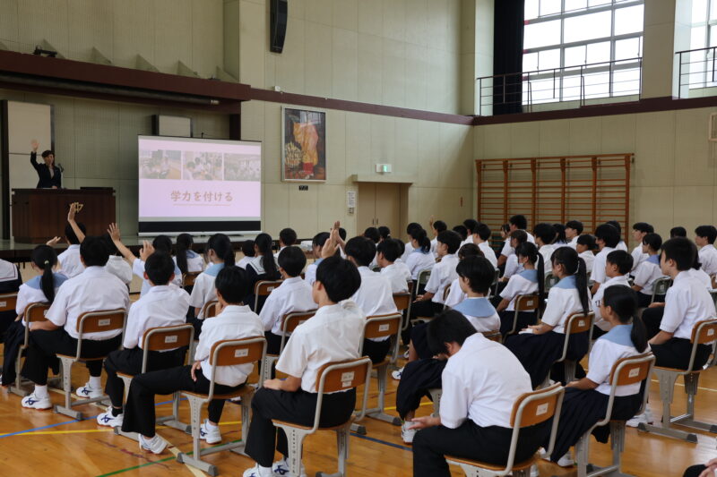 とても堂々とはっきりとした声で全校に思いを届けていました。この思いを、受け手側のみんなが、自分事としてとらえ、みんなで楽しかったといえる学校を築いていきたいね。