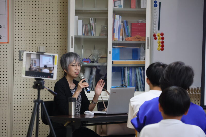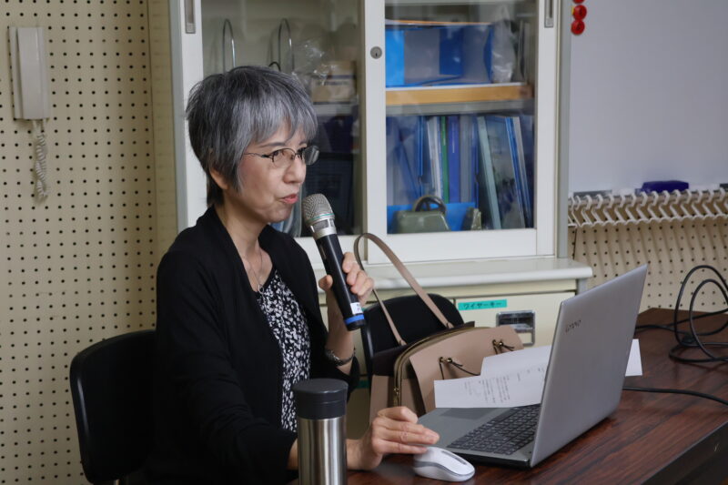 お話の途中には、PCソフトを使って、字幕を付ける作業を見せていただきました。