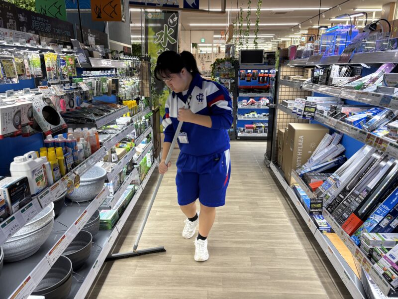 商品の袋詰めや商品シール貼りなどを体験しました。