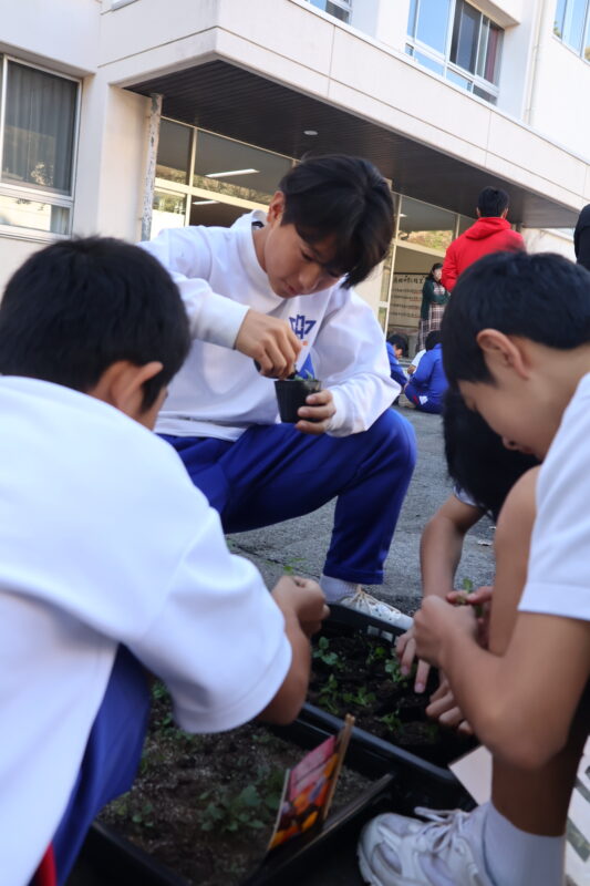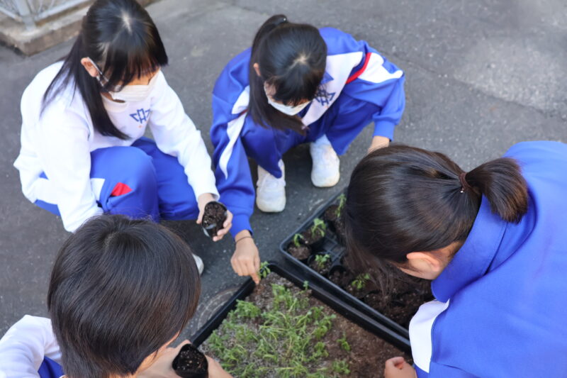 10月28日(火)、朝活動で春用の花苗の仮植をしました。