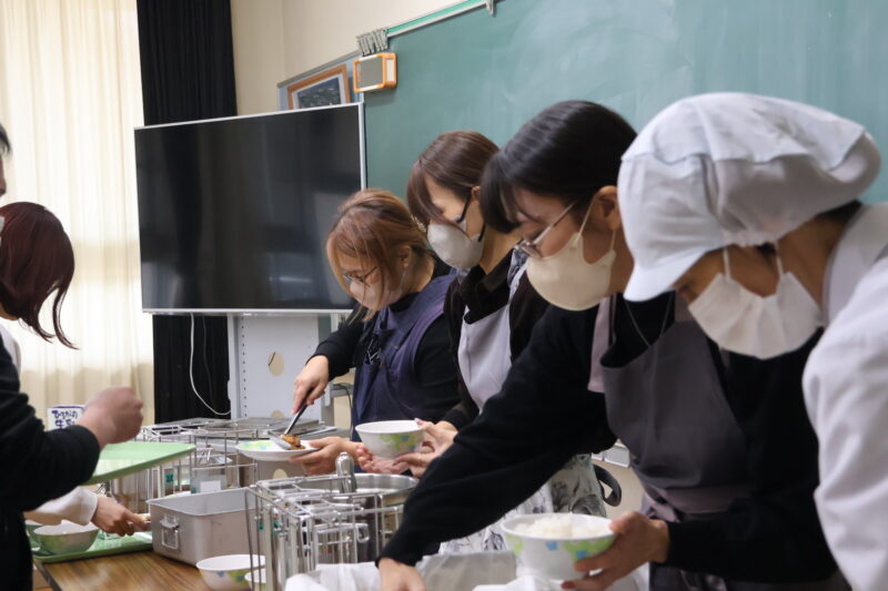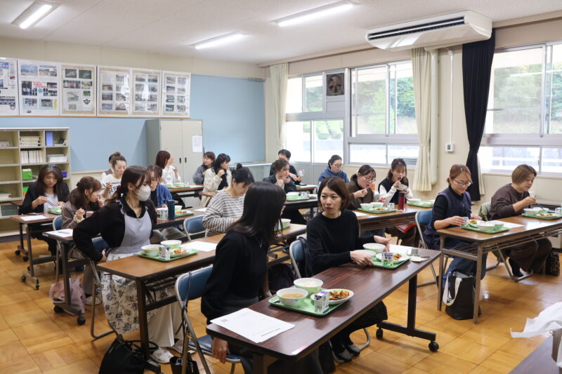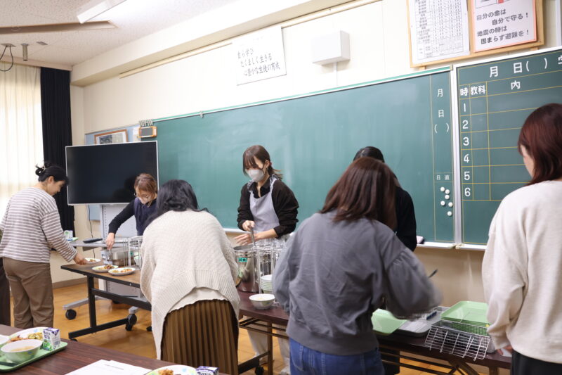 11月 05 2025 PTAより ~給食参観・給食試食会~ 11月5日(水)、栄養講座に合わせて、PTA家庭教育委員会主催の給食参観・給食試食会を行いました。 保護者さん方は、子どもたちの給食の配膳の様子を参観。そのあとは、皆さんで配膳し、給食の試食をしました。「こんなにたくさんのご飯を食べるんだー。」「バランスが取れているし、おいしい~。」などと話をしながら、給食をいただいていました。 給食の後は、栄養教諭の斉藤先生から、給食についてのお話を伺いました。