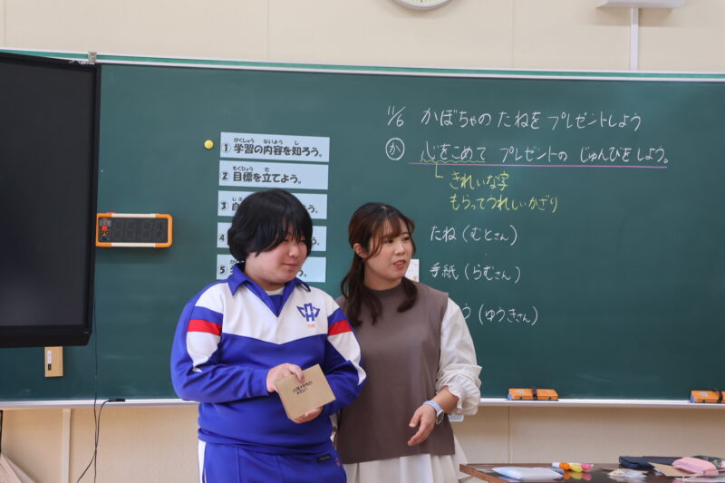 11月 07 2025 あさがお学級の授業を参観しました 11月6日(木)、あさがお学級の授業を参観しました。 この日は、12日に行われる多治見市の交流会でのプレゼントづくりです。 それぞれが一役づつ担当し、相手のことを考えながら作業し、素敵なプレゼントができあ上がりました。 きっとこれをもらった学校のみんなは、嬉しいだろうね。