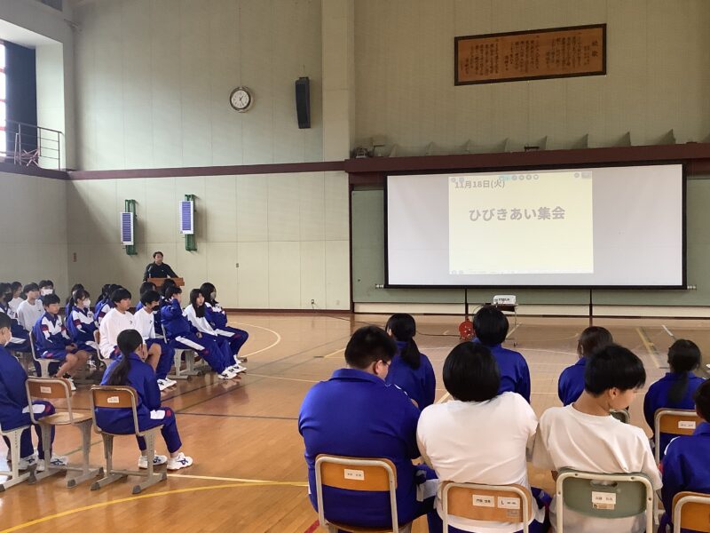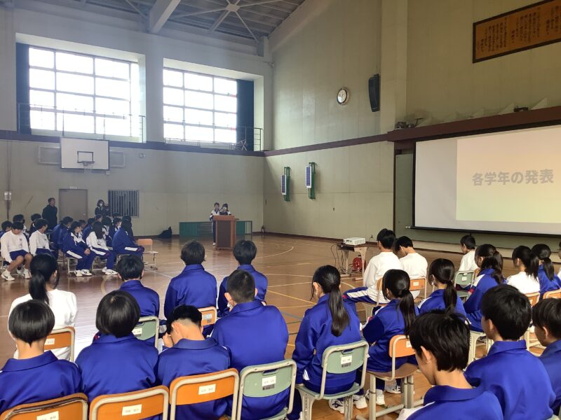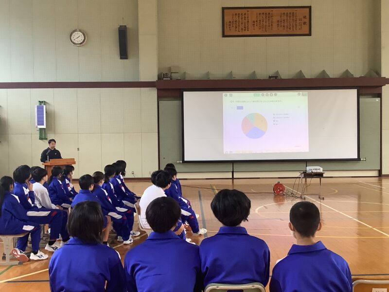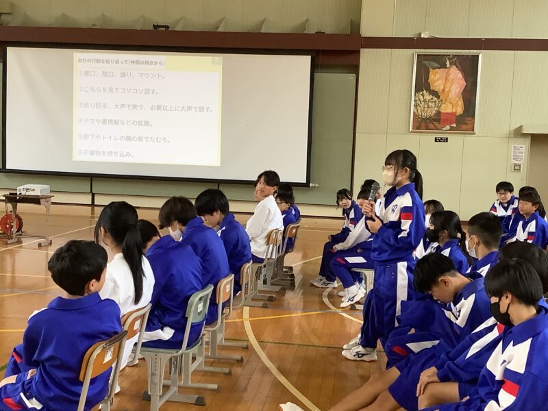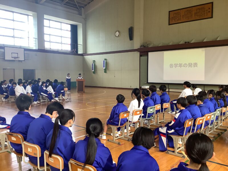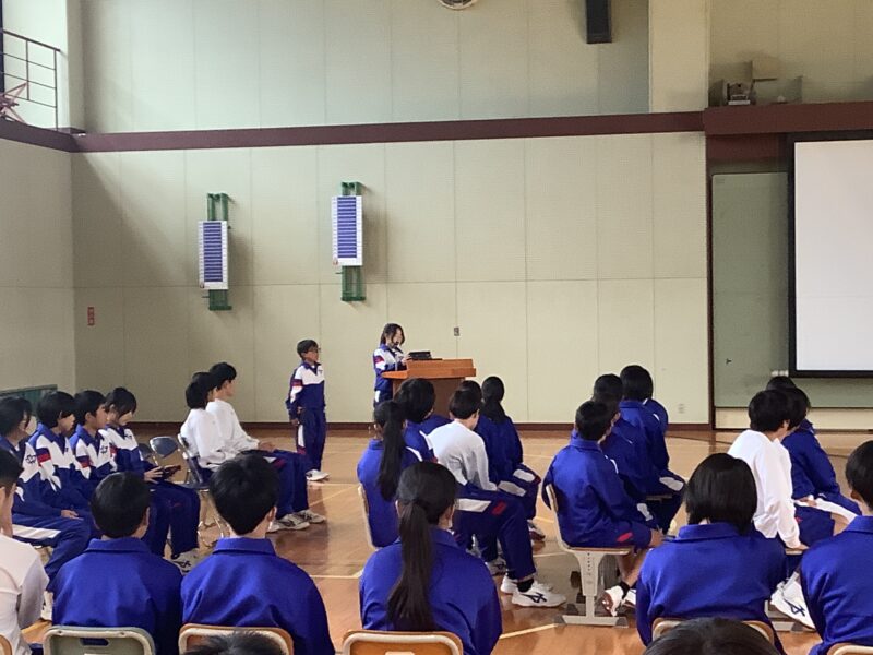11月 19 2025 ひびきあい集会 11月18日(火)、ひびきあい集会を行いました。 今回は、各学年で取り組んだひびきあい活動の報告と、担当の桒原先生から人権についての話がありました。 「いじめは、どんなことがあってもいけないことだと思いますか?」 桒原先生の話を受けて、縦割りグループで交流。 最後は、交流したことを全体で共有しました。 この集会を通して感じたことで、これからの生活の中で立ち止まる瞬間があるといいな。