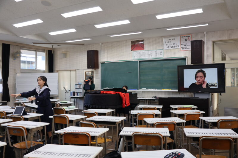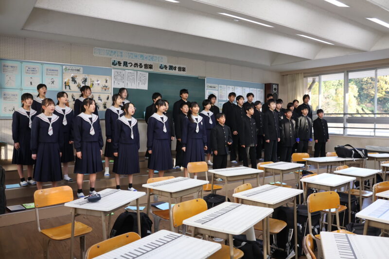 11月 21 2025 合唱交流会 11月19日から21日までの3日間、合唱交流会を行いました。 合唱交流会で行ったのは、・2つの学年の合唱交流・合唱祭の講師である土田めいこさんによるオンライン指導です。 互いを見合ったり指導をいただいたりして、合唱への想いが高まってきている南姫中生です。