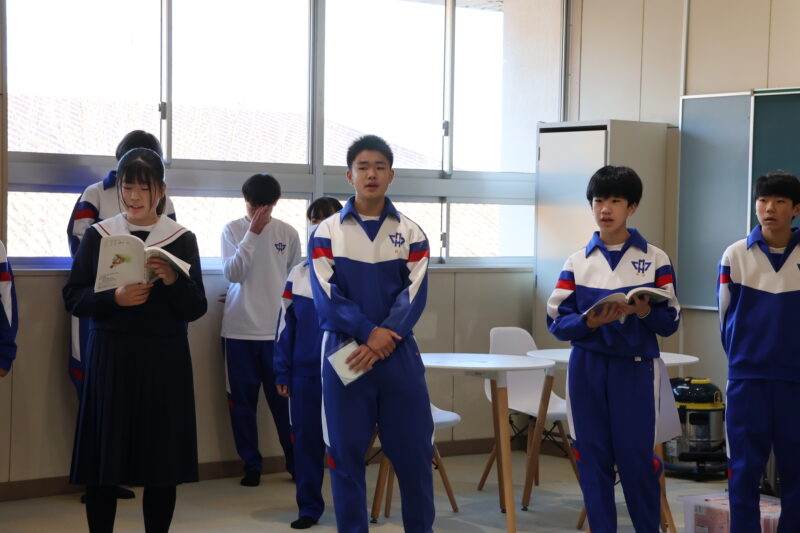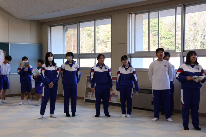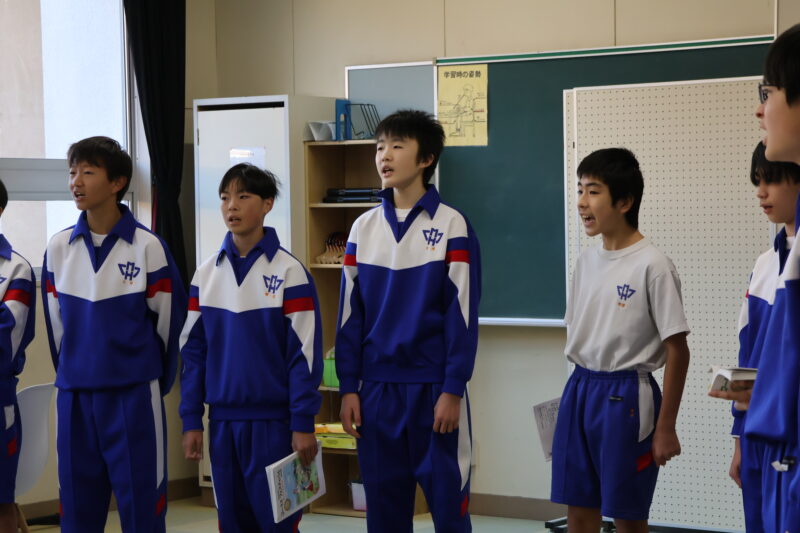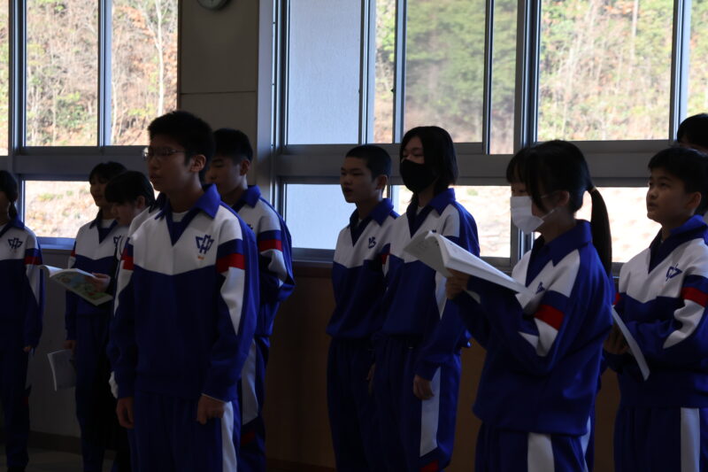 12月9日(火)朝活動は、縦割りグループで全校合唱の練習をしました。