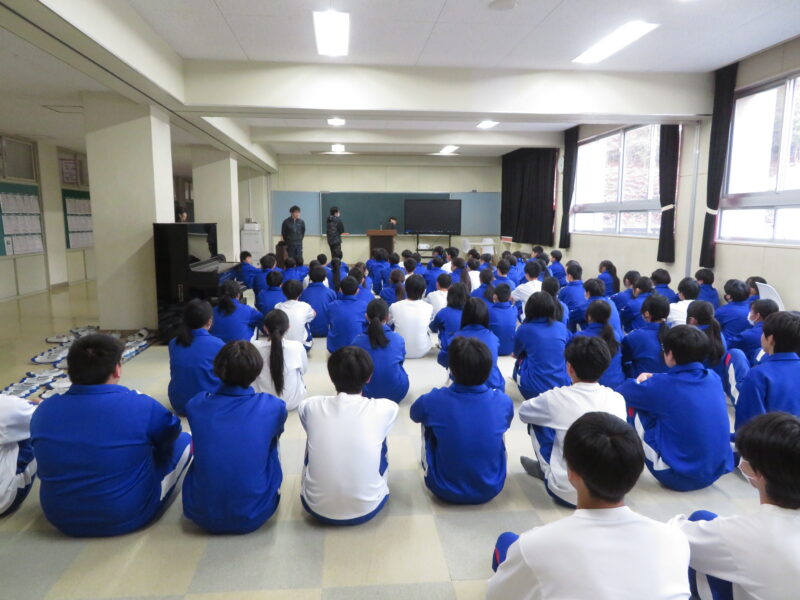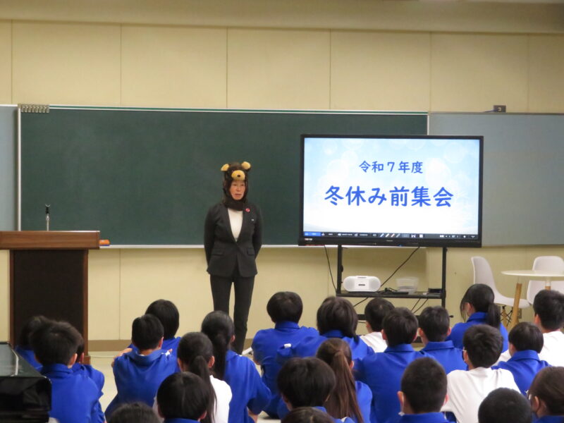 校長先生からは、今年の漢字は「熊」でした。皆さんにとっての漢字一文字はなんでしたか? と、巳年のスタートに話をした再生と進化について、成長したこと、この冬の過ごし方について話がありました。