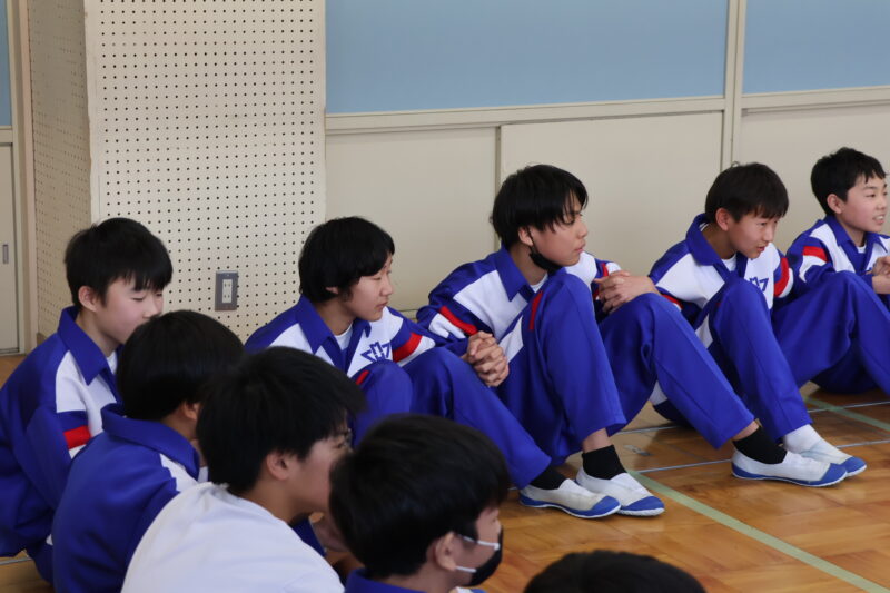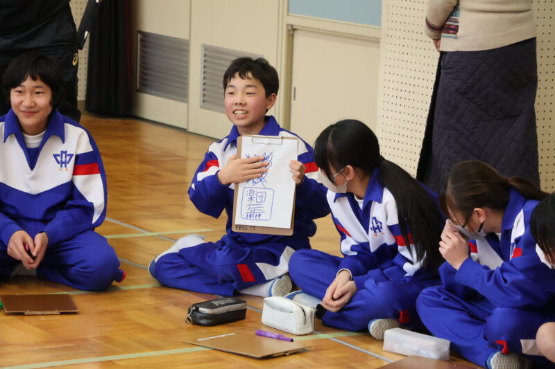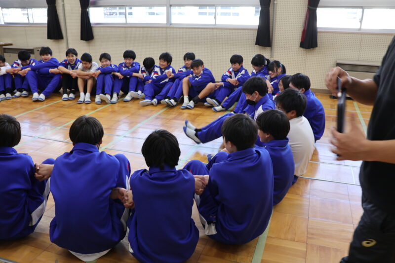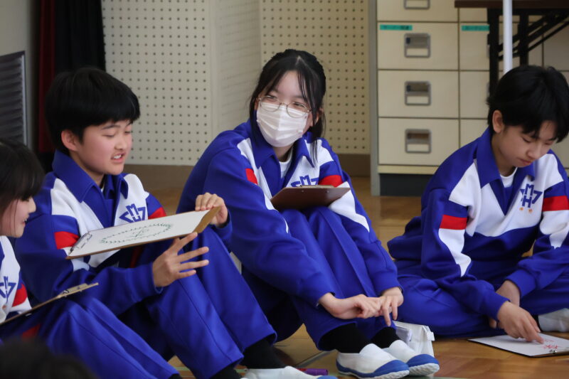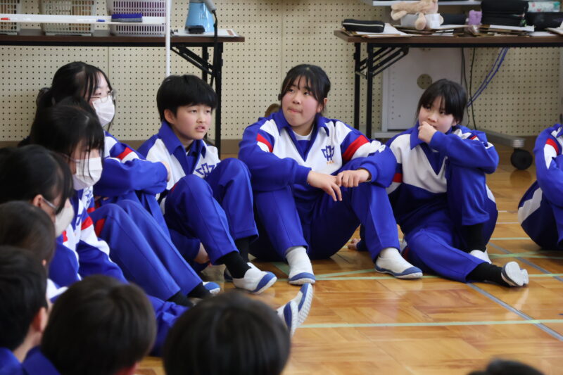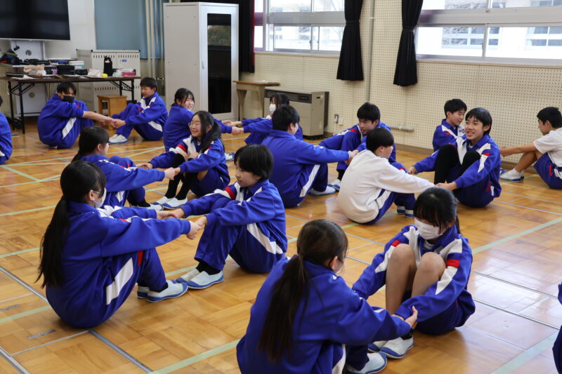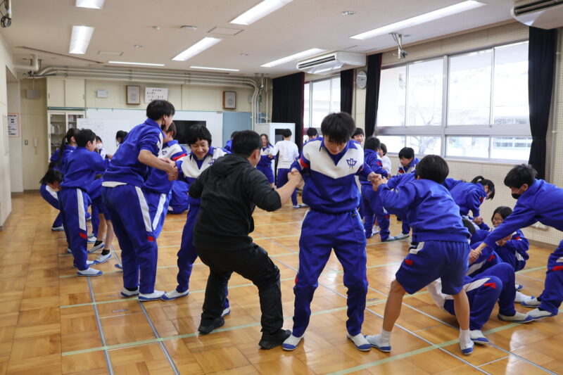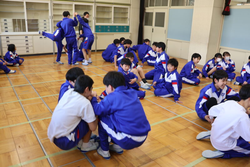 1月 23 2026 1年生 白川郷研修事前学習 1月22日(木)、1年生が、白川郷トヨタ自然学校の大豆村さんに来ていただき、白川郷研修の事前学習を行いました。 この研修の目的は、お互いの信頼関係を深めること。関係を深めたうえで、来年の研修を迎え、より充実した研修にしたいというものです。 研修は、仲間づくり。 表情からわかるように、どの子も研修をとても楽しんいました。 来年の研修が今から楽しみです! 大豆村さん、ありがとうございました!