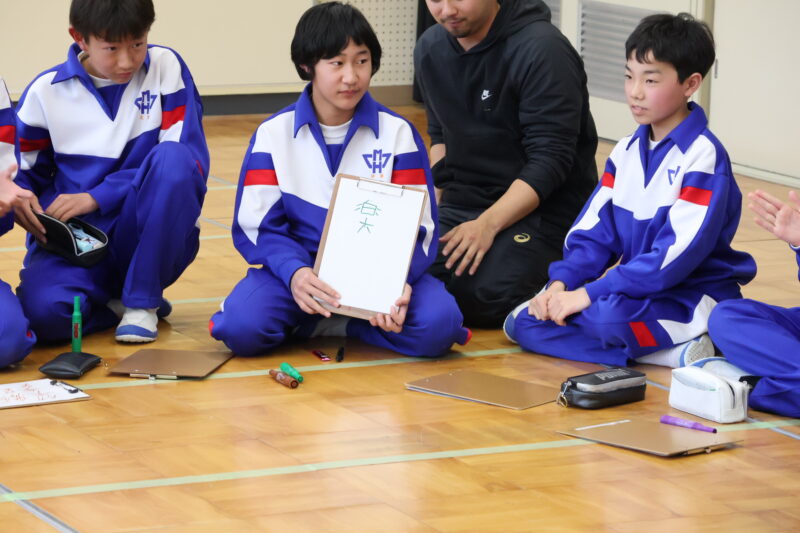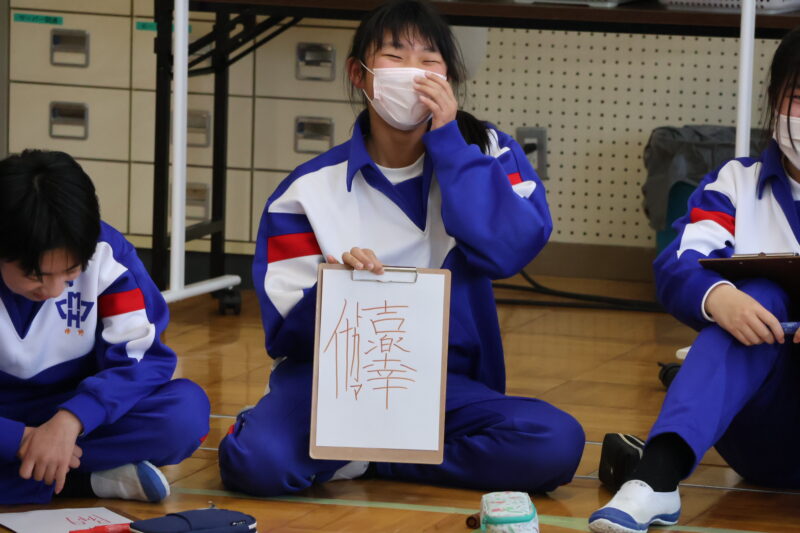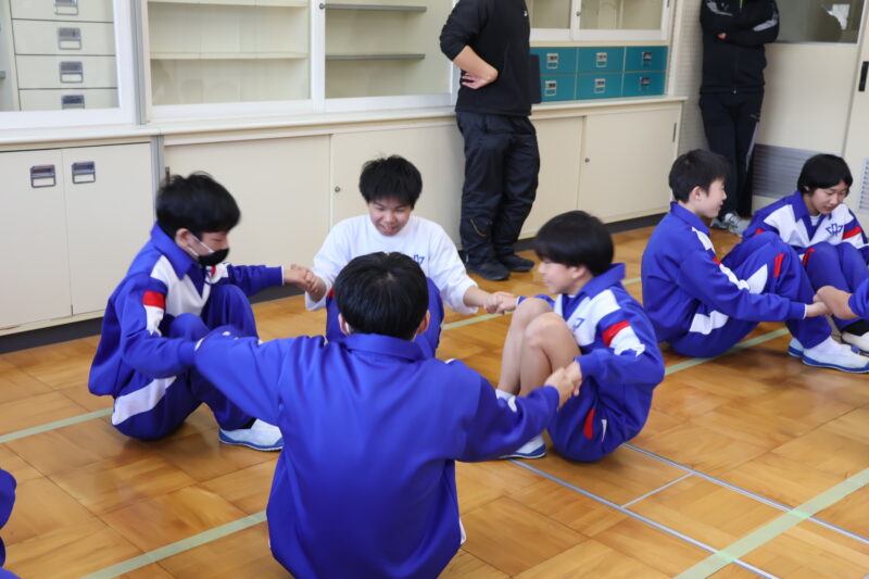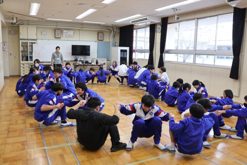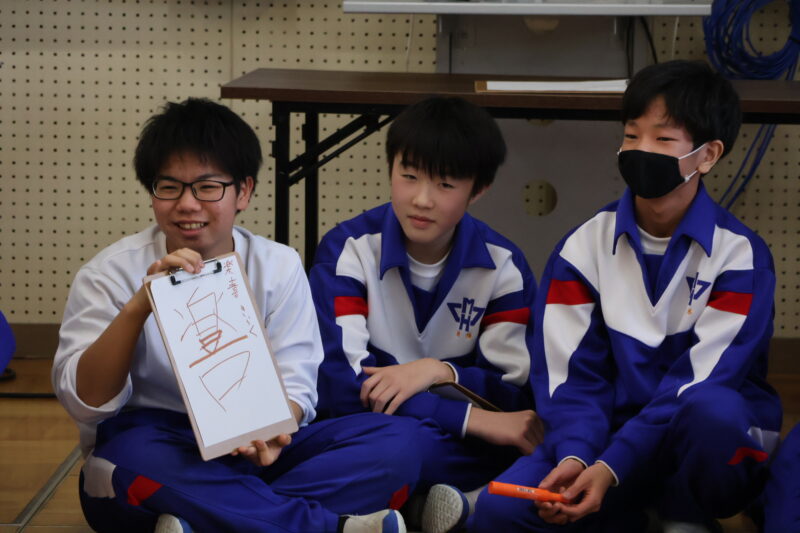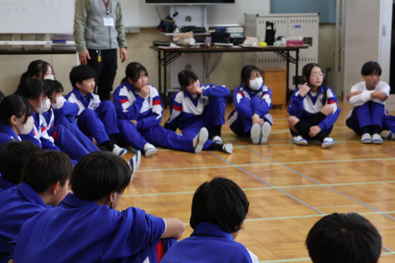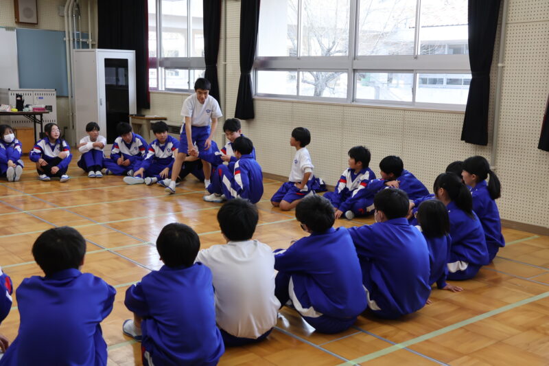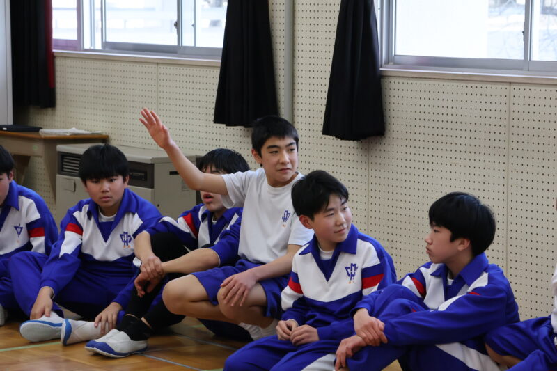 1月 23 2026 1年生 白川郷研修事前学習 1月22日(木)、1年生が、白川郷トヨタ自然学校の大豆村さんに来ていただき、白川郷研修の事前学習を行いました。 この研修の目的は、お互いの信頼関係を深めること。関係を深めたうえで、来年の研修を迎え、より充実した研修にしたいというものです。 研修は、仲間づくり。 表情からわかるように、どの子も研修をとても楽しんいました。 来年の研修が今から楽しみです! 大豆村さん、ありがとうございました!