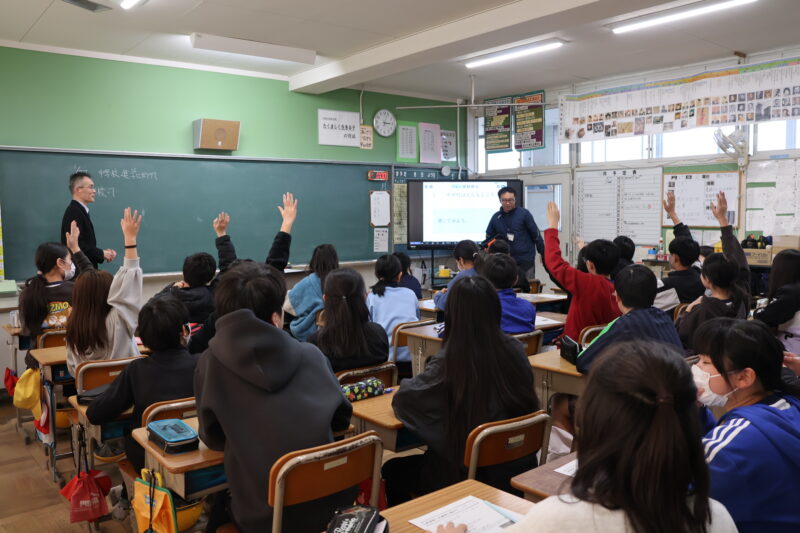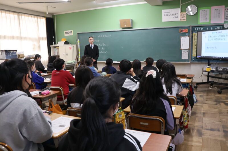 1月 27 2026 南姫小学校での講話 1月27日(火)、南姫小学校で、生徒指導主事の勝川先生が中学校に向けての講話を行いました。 子どもたちは集中して話が聞ける素敵な6年生でした。 勝川先生の「中学校はどんなところだと思いますか?」の問いに・・・ 「厳しい」というイメージがけっこう多かったですが、自分で考えて行動するなど、主体性を大切にするところだというイメージもあるようでした。 質問に対しても多くの子が答えようとするなど、前向きな子どもたちばかりで、中学校に入学するのがとても楽しみです。