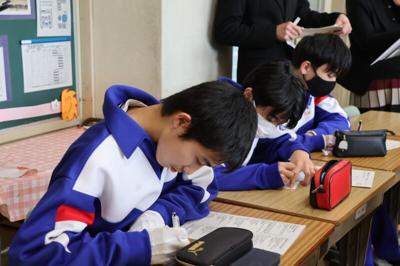 どの子も真剣に課題に向き合い、自分が取り組むべきことを考えました。グループ交流では、仲間の考えた内容についでアドバイスをしあったことで、一歩踏み込んだ内容を考えることができた子が何人もいました。
