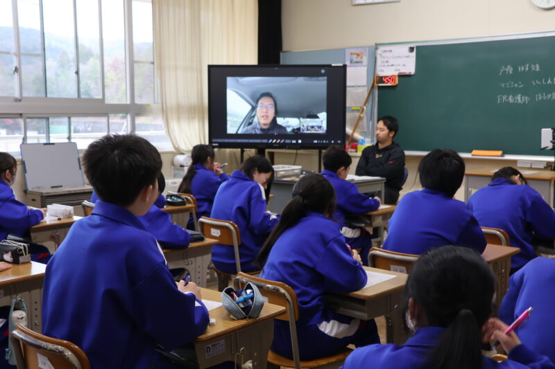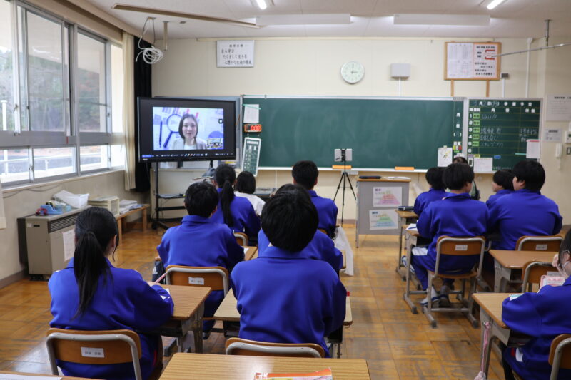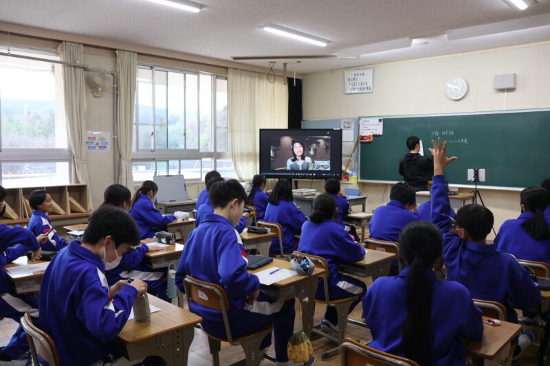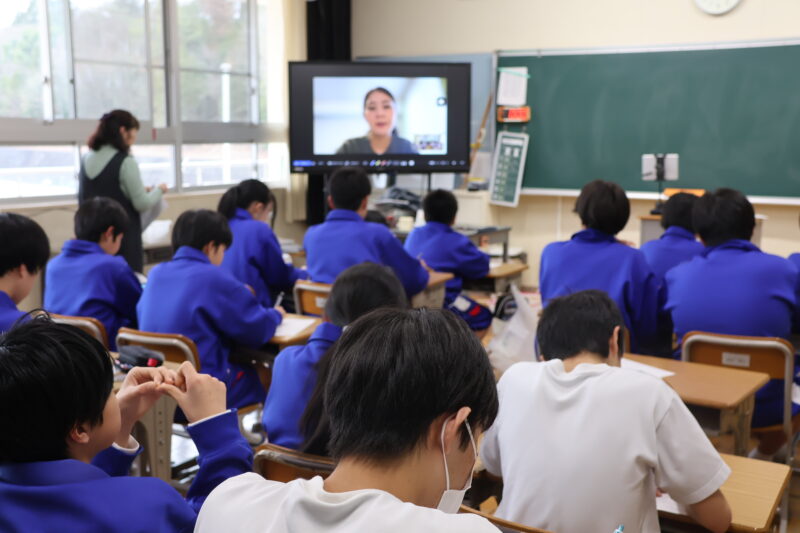 3月 02 2026 ブルーベリーによるオンライン研修 2月27日(金)、1年生がキャリア教育の一環として、ブルーベリーのオンライン研修を行いました。 この研修は、各学級3名の講師の方の仕事について話を伺い、質問をして、職業についての理解を深めるというものです。 講師の方のお話がうまく、生徒たちはいろんな仕事についての理解を深めていました。