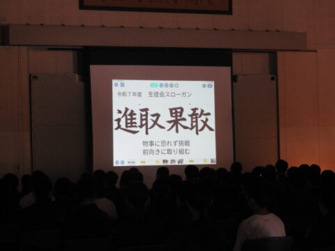 令和7年度生徒総会が行わわれ、今年度の南中の生徒会スローガンや各委員会の活動について意見交流しました。生徒会スローガンは、「進取果敢(しんしゅかかん)」に決定しました。これは、新しいことに積極的に挑戦し、失敗を恐れず大胆に行動する様子を表す四字熟語です。
