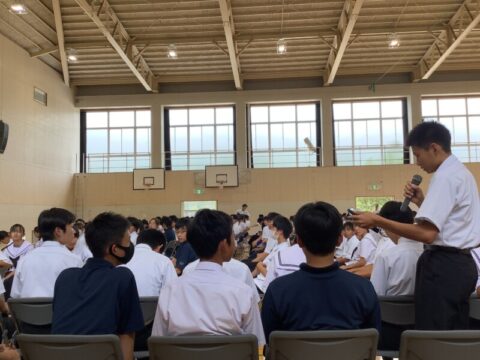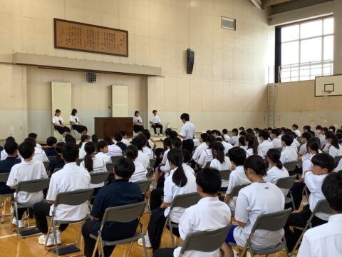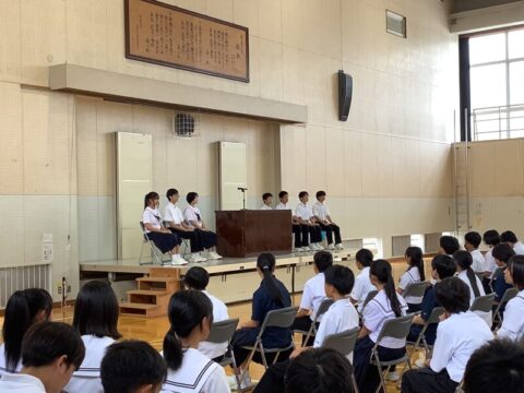 令和7年度後期生徒会役員選挙立会演説会が行われました。立候補をしている生徒たちは、自分が目指す「〇〇な南中」を実現させるために何に力を入れて取り組むのか、堂々とした姿で語ってくれました。立候補者のみなさん、選挙管理委員のみなさんお疲れさまでした。
