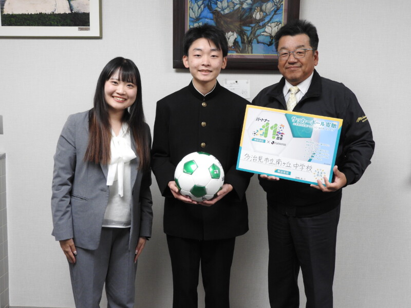 その活動の中で、12月11日に南ヶ丘中学校もサッカーボールをいただきました。