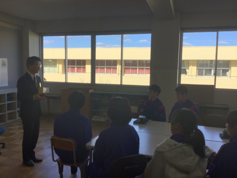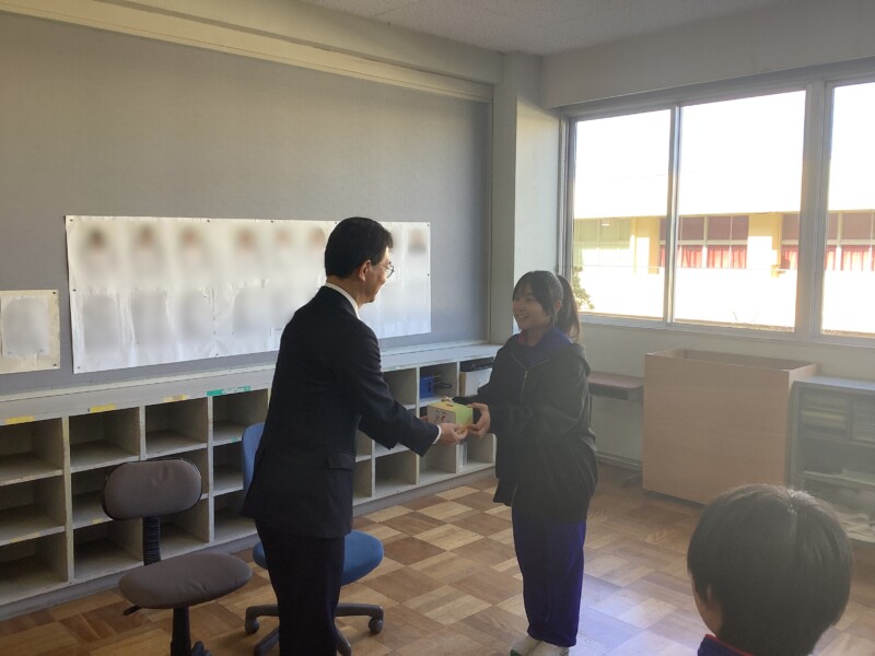 12月5日まで生徒会役員が中心で呼びかけていた赤い羽根共同募金を社会福祉協議会に受渡しました。「社会に貢献したい」という気持ちで集めまった募金です。車椅子のまま乗車できる福祉車両の購入等に役立てられるそうです。ご協力いただいた皆様ありがとうございました。