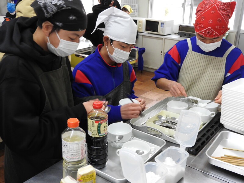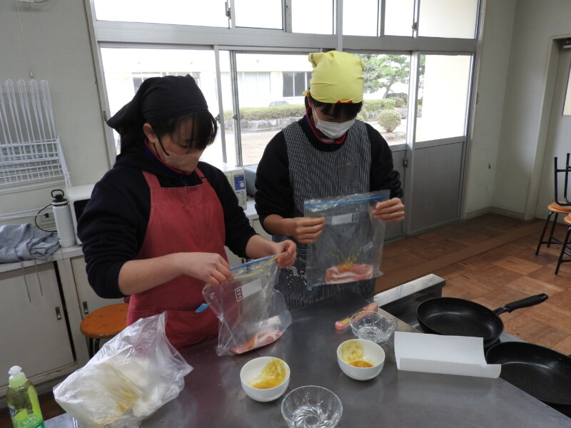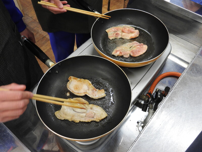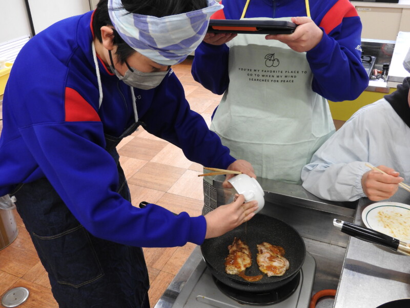2年生の調理実習の様子です。今回は、生姜焼きを作りました。校内が生姜焼きのおいしい匂いに包まれました。肉に味をしみ込ませたり、火加減を調節して焼いたり、それぞれ工夫をして作ることができました。けがなく終わることができてよかったです。