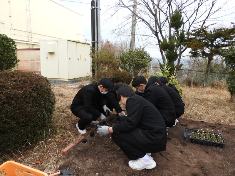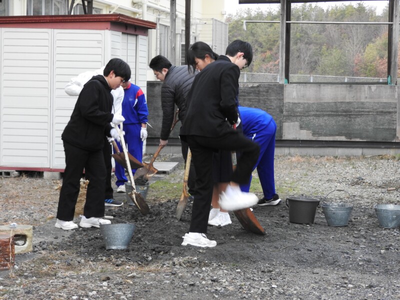 福祉委員長の呼びかけで、朝ボランティアを行いました。30名以上の生徒が呼びかけに応えてくれて、水たまりの予防の穴埋めや花壇の整備、校舎周りの掃除を行ってくれました。ボランティアに参加するために、いつもよりも早く登校してくれた生徒もいたようです。寒い中の作業ありがとうございました。