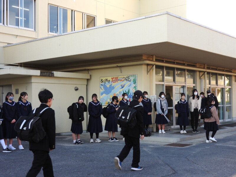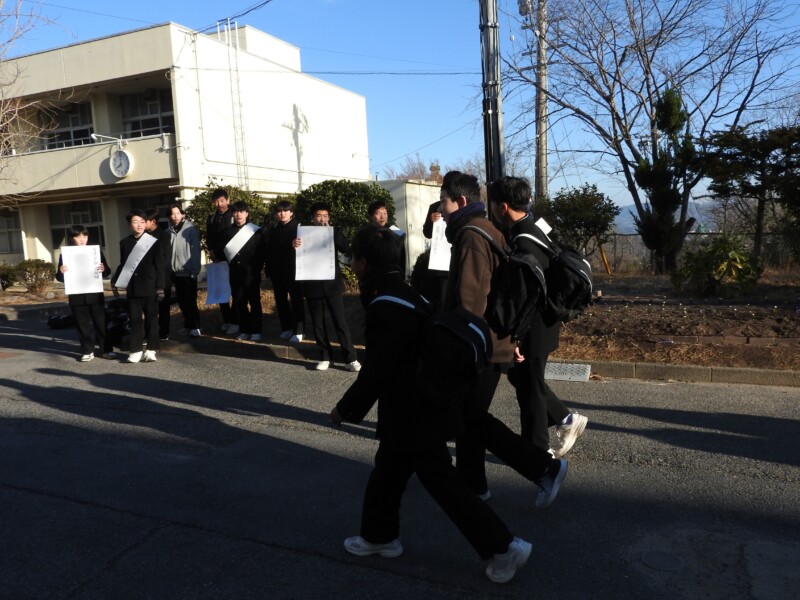 月・水・金曜日の朝は、生活委員の活動として挨拶活動が行われています。一応担当の生徒が決まっていますが、ボランティアで参加している生徒も多いです。今日からは、選挙活動も始まり、さらに活気のある玄関になっていました。