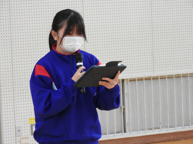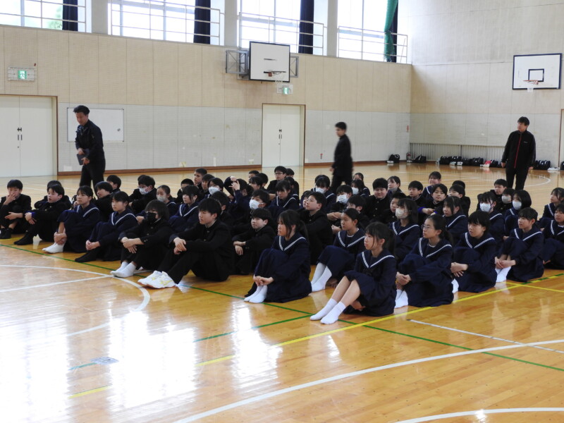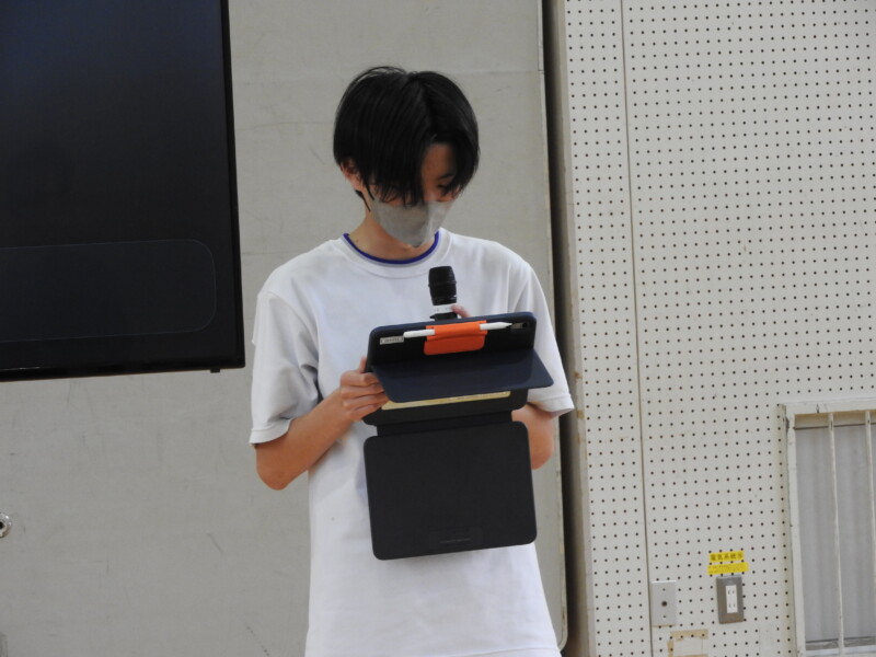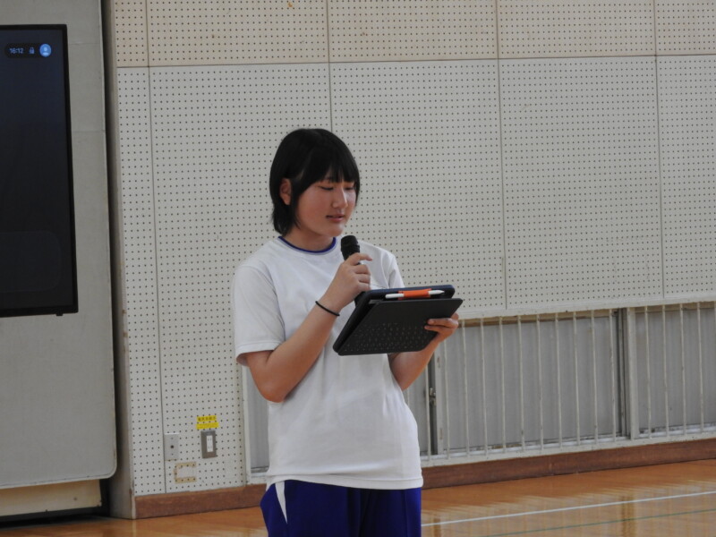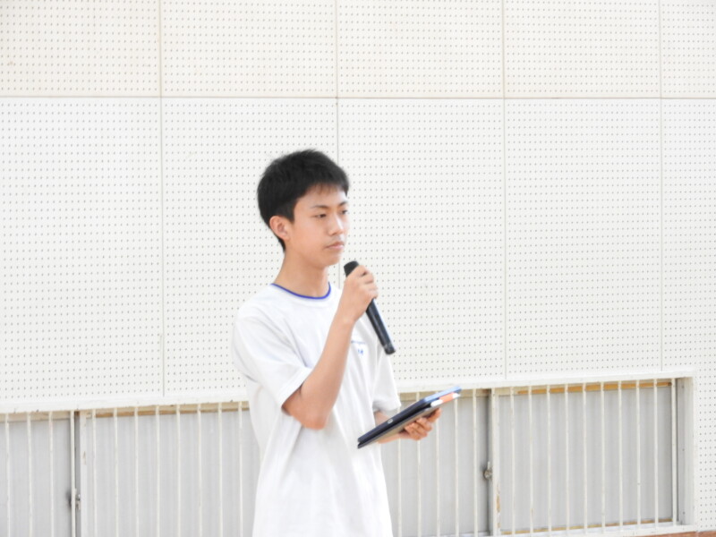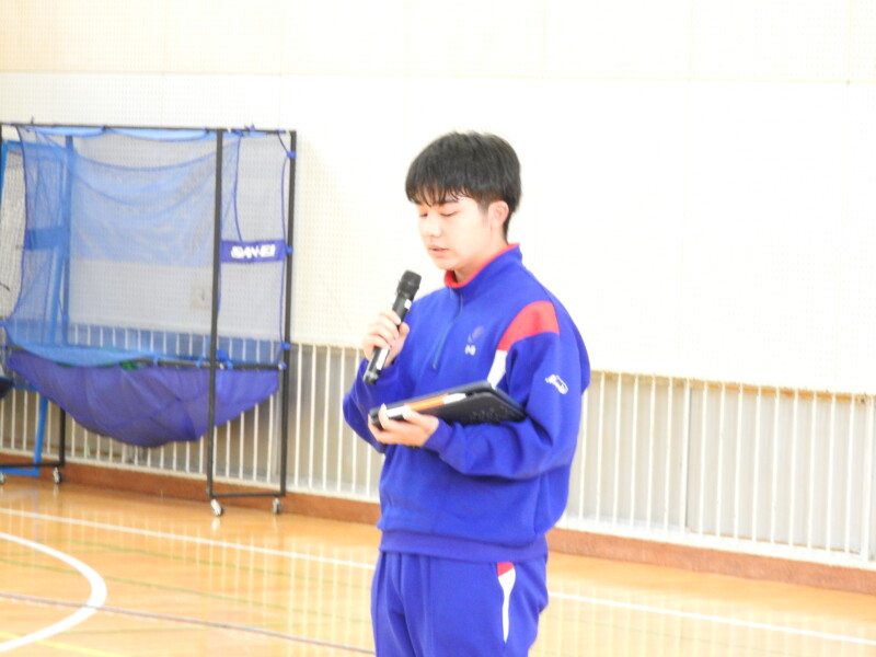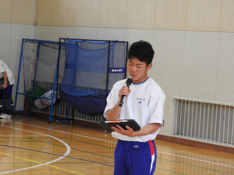 今年から部活動の目的に「選んだ競技や活動そのものを楽しむ」が付け加わり、楽しく活動ができることを各部の部長が紹介しました。1年生は興味をもって参加することができました。