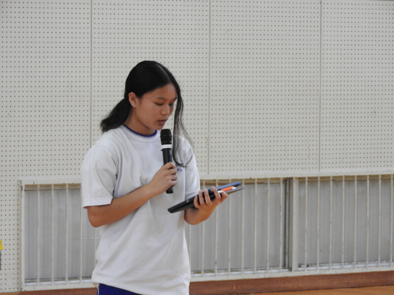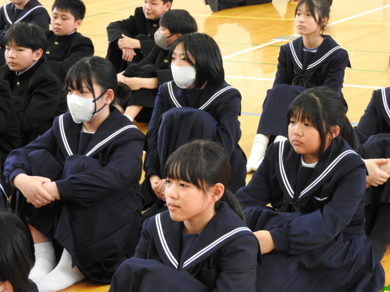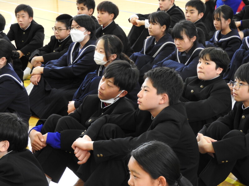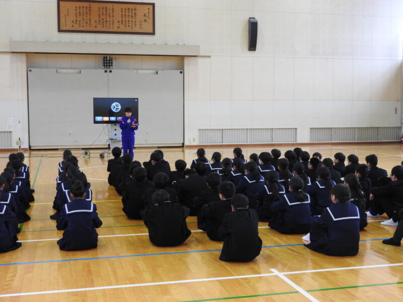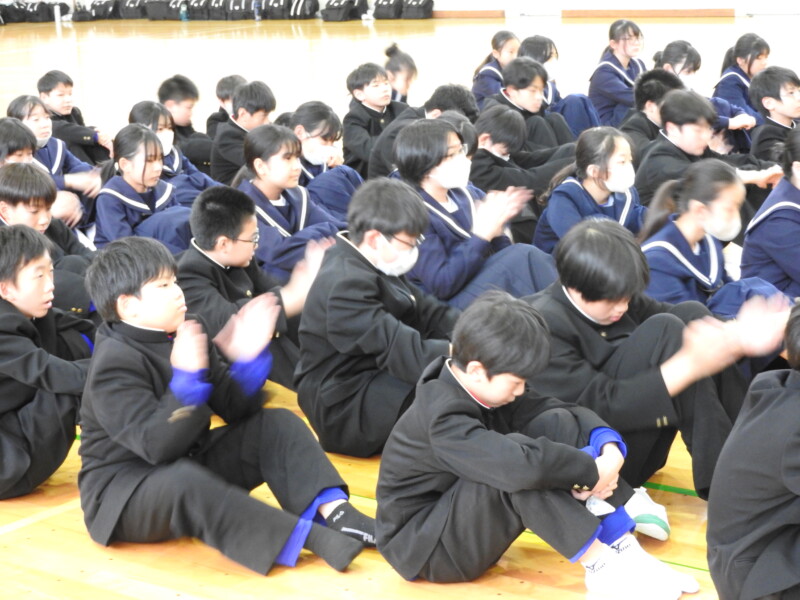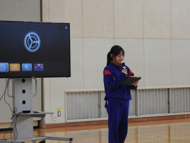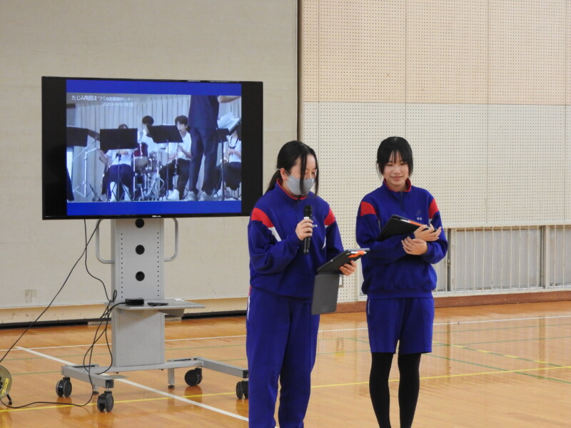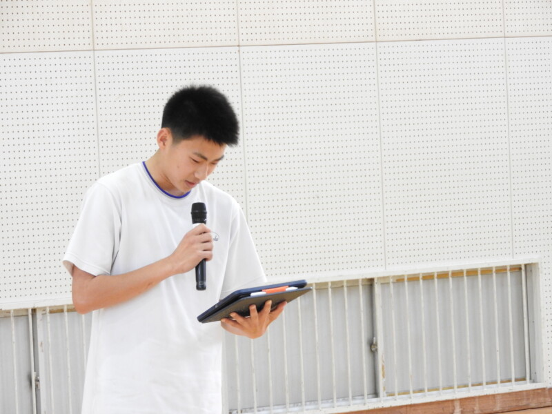 今年から部活動の目的に「選んだ競技や活動そのものを楽しむ」が付け加わり、楽しく活動ができることを各部の部長が紹介しました。1年生は興味をもって参加することができました。