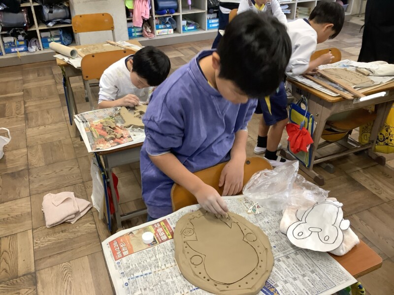 「どうすればかわいくなるかな?」「この模様はどうしよう?」と考えながら、真剣なまなざしで取り組む子ども達。 耳やしっぽを立体的にしたり、模様をつけたりと、一人ひとりが工夫を凝らし、粘土の中から生き生きとした動物たちが生まれていました。
