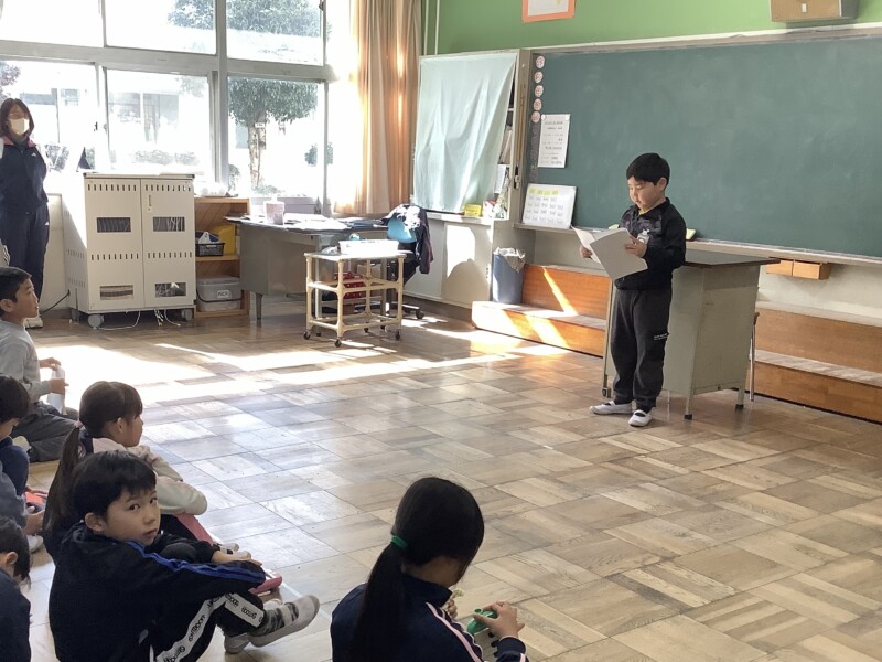 今週1月24日~30日は全国学校給食週間です。学校給食センターから栄養教諭の先生と調理員さんが来校され、給食の重要性についてお話をしてくださいました。