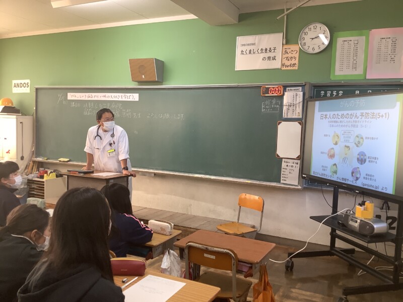 がん教育の根幹は、「両親ががんになったときに自分にできることは何か」「自分ががんにならないようにどう生きるか」を考えることです。命や健康の大切さ、そして周りの人を思いやる気持ちについて学ぶ、とても貴重な時間となりました。