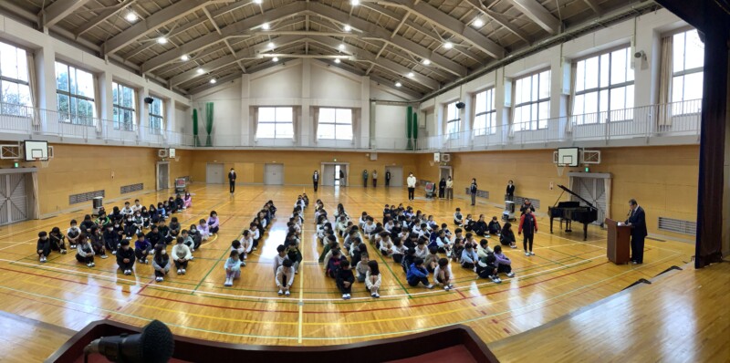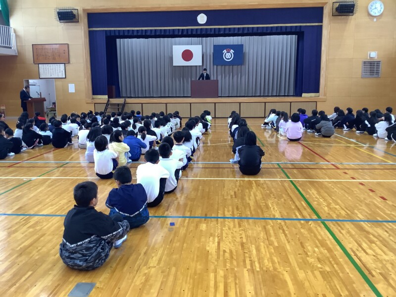 今年をあたたかく締めくくる冬休み前集会を、南姫小学校の体育館で行いました。