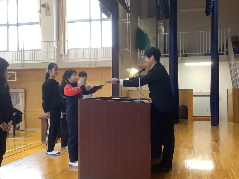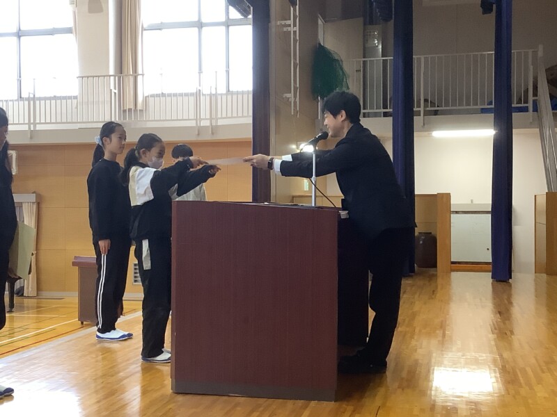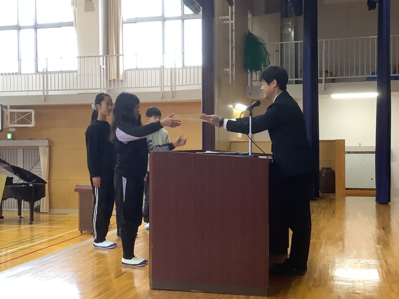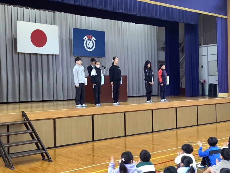 後期のスタートから、子ども達は日々の学びや行事に全力で取り組み、友達の活躍に温かな拍手を送り合いながら、互いを高め合う輝く瞬間を数多く生み出してきました。そんな挑戦の積み重ねが自信を育て、成長を促し、たくましい姿に変わっていきました。校長からは、そんな子ども達の歩みを振り返り、称えるお話がありました。