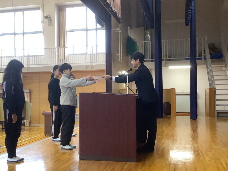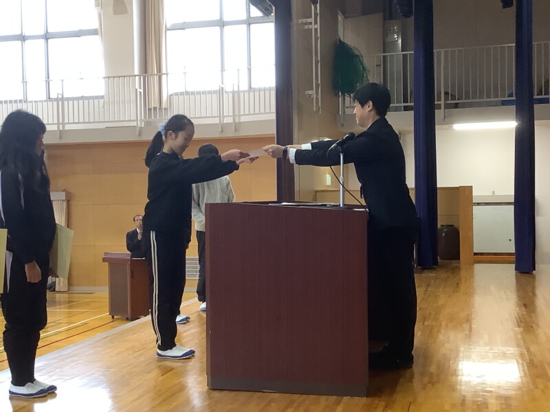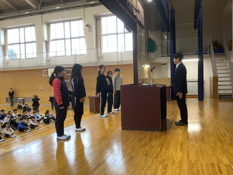 続いて表彰と生徒指導の先生から「お金、ゲーム、冬の歩き方」の大切な注意喚起がありました。給食時には養護教諭から「早寝早起き、あさごはん」で生活リズムを整え、健康に過ごそうという温かなお話も。