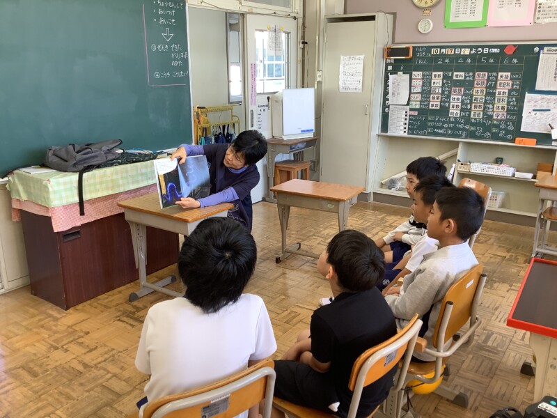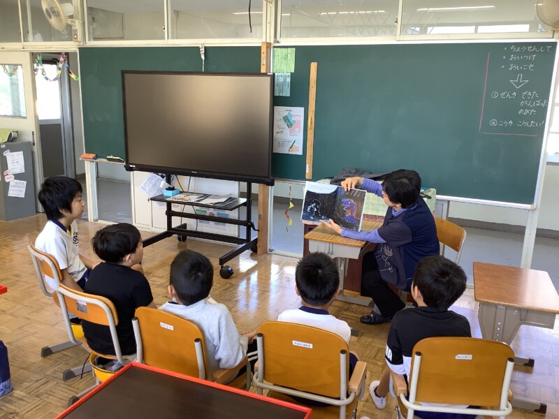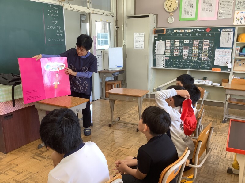 10月 17 2025 大好きな読み聞かせの時間〈全校〉 地域や保護者の方々をお迎えし、子ども達が楽しみにしていた「読み聞かせの時間」が行われました。素敵な絵本を前に、子ども達は目を輝かせ、「え、食べられちゃうの?」「わあ、大きい絵本だ!」と声をあげて夢中に聞き入っていました。読む方のやさしい声や間のとり方に、教室の空気がゆっくりとあたたかく包まれていきます。子ども達はお話の世界にぐっと引き込まれ、最後まで真剣に耳を傾けていました。保護者の皆様のあたたかいご協力に感謝しながら、心あたたまる時間をみんなで共有することができました。本日は、読み聞かせをしていただき、本当にありがとうございました。