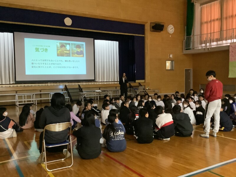 今日の講話を通して、一人ひとりが少しでもやさしい気持ちをもち、あたたかく安心できる学校づくりにつなげていきたいと思います。