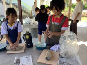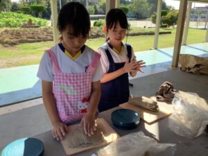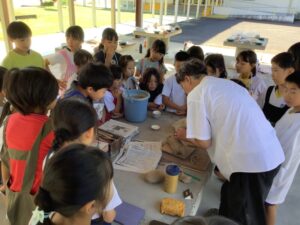 9月 30 2025 作陶教室~世界に一匹の自分だけの海の生き物~(3年生) 陶芸講師の方をお招きし、3年生が「世界に一匹の自分だけの海の生き物」を作りました。新聞紙を丸めて芯にし、粘土の板をそれに巻き付け、思い思いの飾りを付けました。子どもたちは、想像力を働かせ、個性豊かな生き物を創り上げました。焼き上がりが楽しみです。