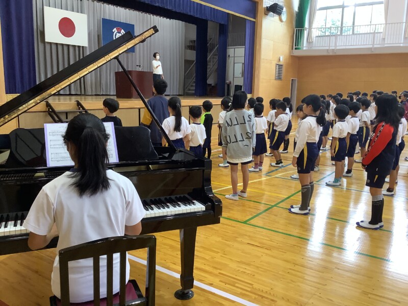 南姫小学校では、令和7年度前期の終業式を行いました。今回から式に校歌斉唱を取り入れ、伴奏を担当した児童が堂々と演奏し、全校で心をひとつに歌いました。