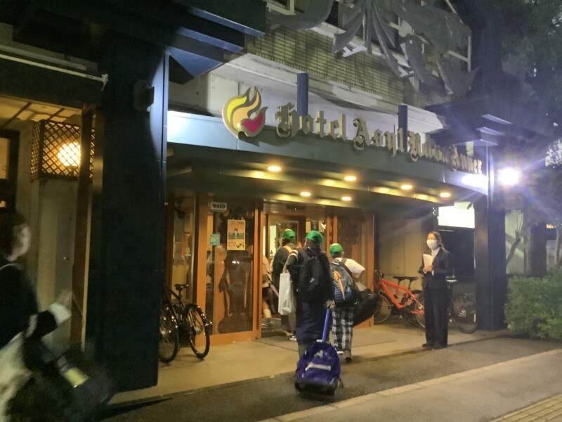 10月 23 2025 修学旅行1日目 ホテル到着〈6年生〉 いよいよ待ちに待ったホテルへの到着です。ホテルでの過ごし方について確認をし、ホテルの方に挨拶をしました。この後は食事です!お腹が減ったー!笑