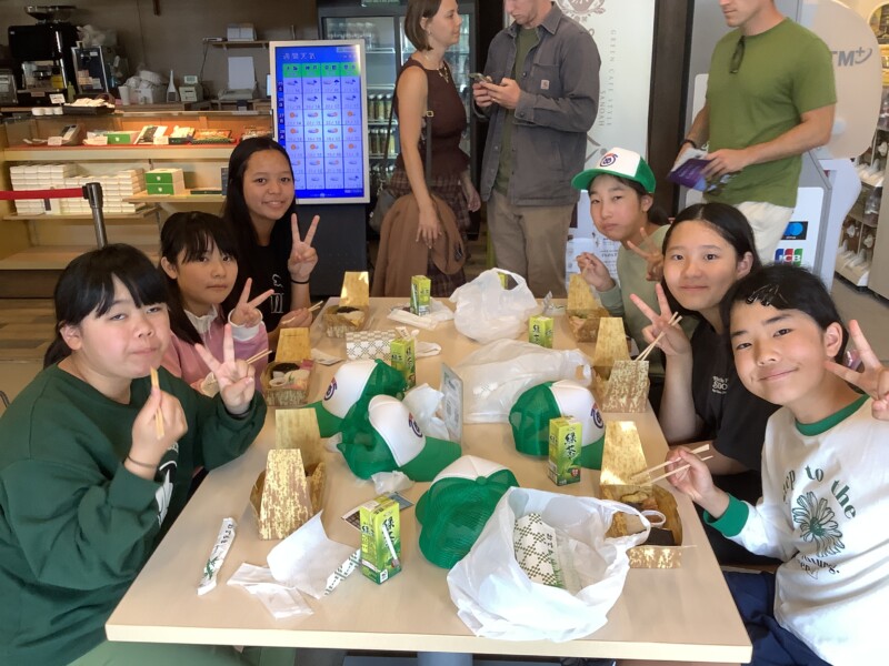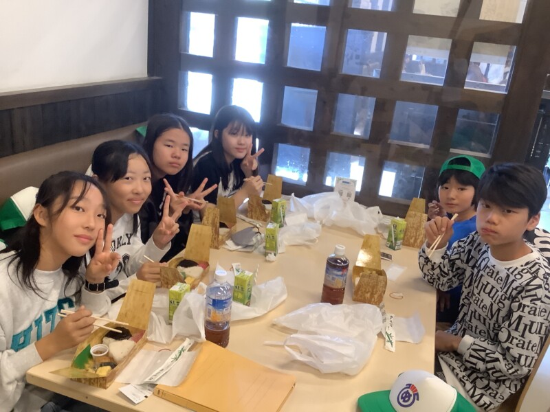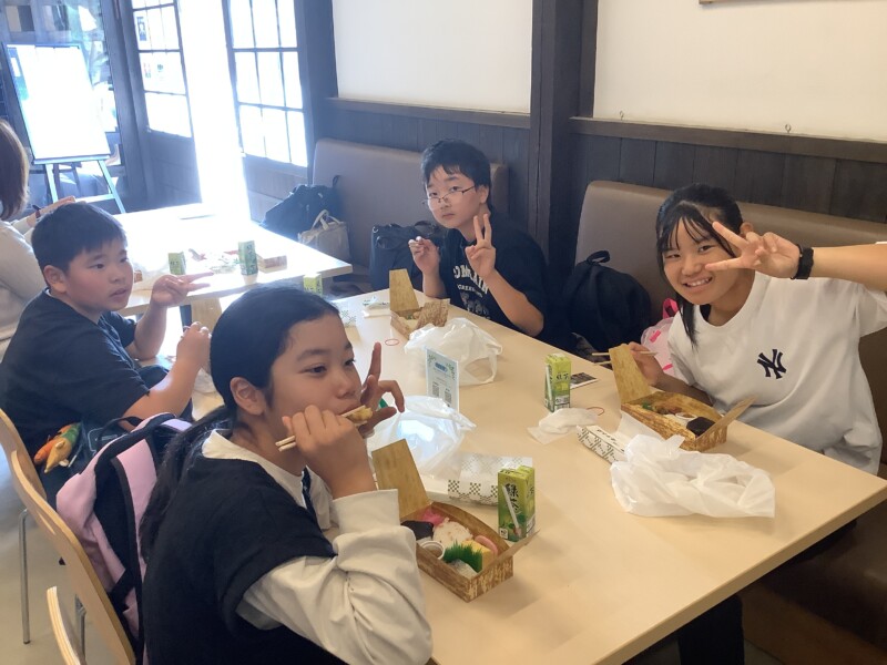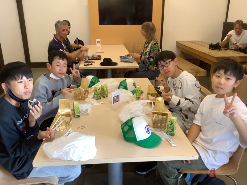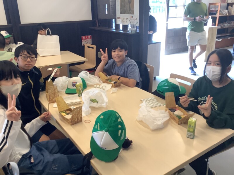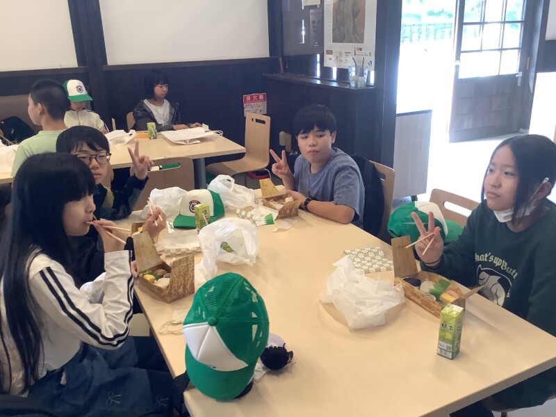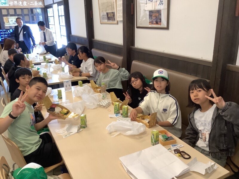 タクシー研修から帰ってきて、みんなで二条城の大休憩室でお弁当を食べました。