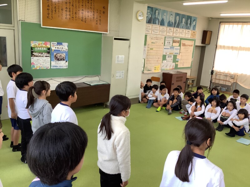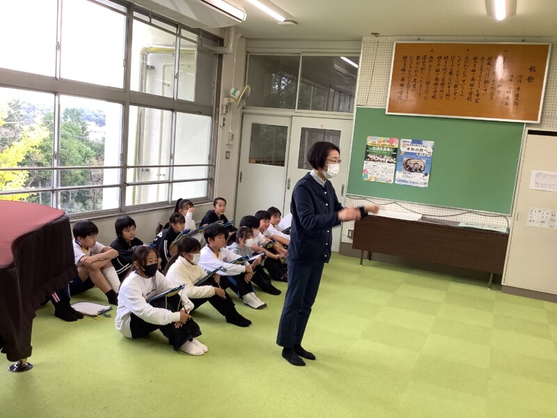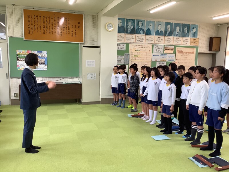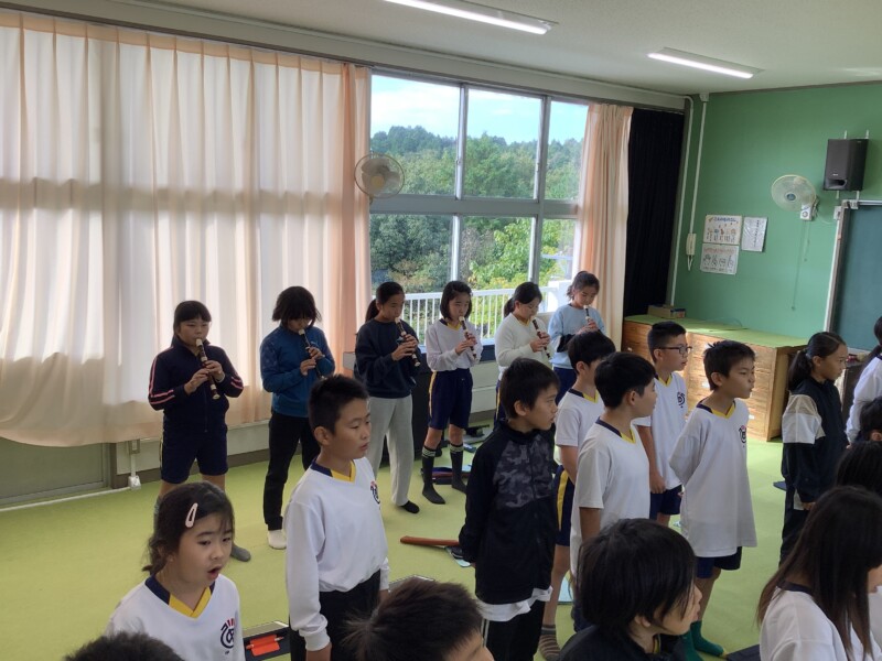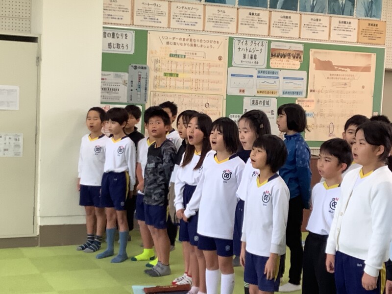 11月には研究発表会で音楽の授業を見てもらう予定の5年生。発表の直前には、4年生に仕上げた合唱を聴いてもらう約束もしていました。いいぞ!5年生!