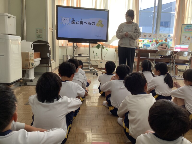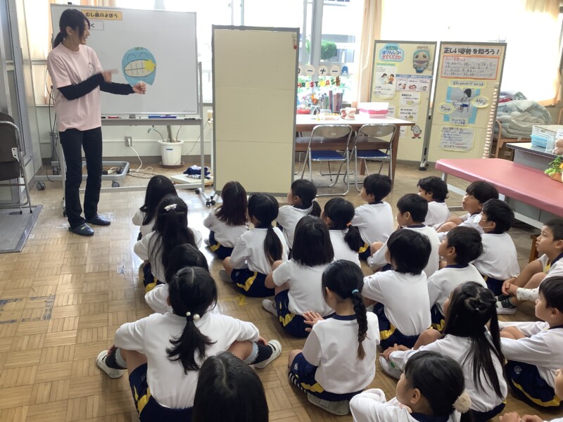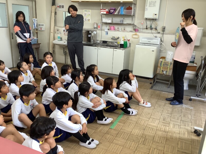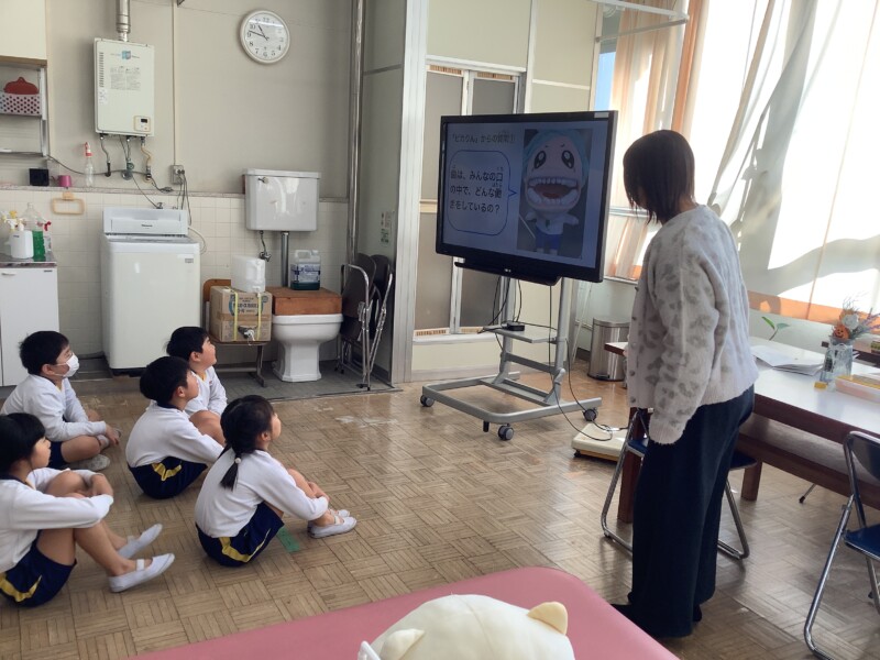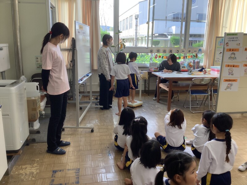 11月 11 2025 体重測定を行いました〈1・2年生〉 今日は1・2年生の体重測定を行いました。1年生の子ども達へは栄養教諭の先生から、2年生の子ども達には養護教諭の先生から、歯に関するお話をしてもらいました。よく噛んで、よく食べて、大きく成長しているかな。