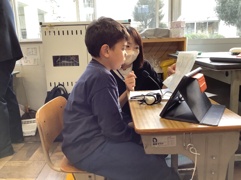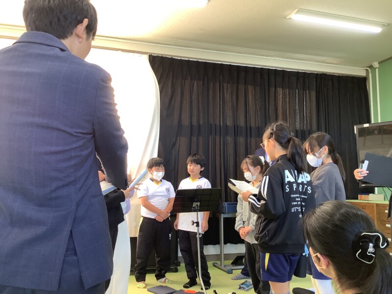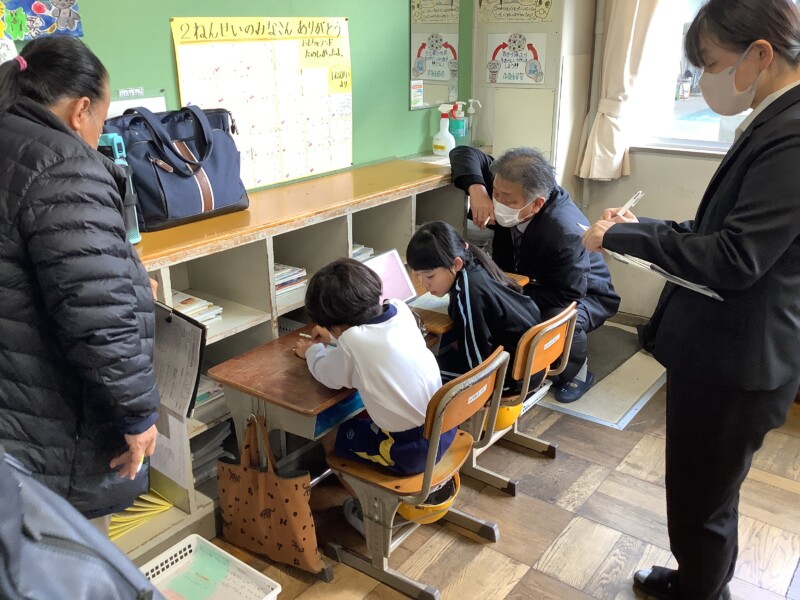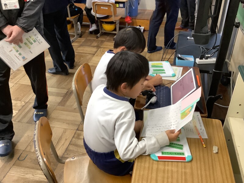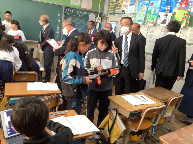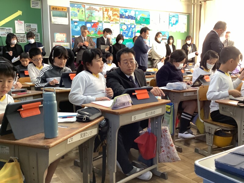 授業以外にも挨拶、学校紹介ビデオ、授業会場までの案内などなど、子供が生き生きと活動する姿をたくさん見てただくことができました。教育長さんからも「人懐こいだけでなく、堂々とした姿になってきた。」とのお言葉をいただきました。