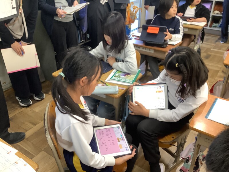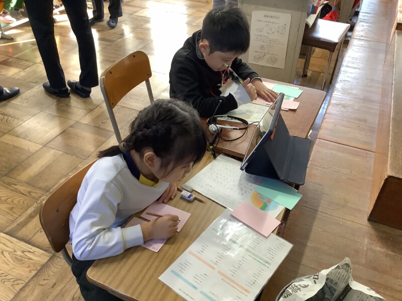 当日は、授業では、仲間と意見を出し合ったり、教えあったりしたり、自分で集中して取り組んだりしながら問題や課題に向かっている姿を見ていただけ、たくさんのお褒めの言葉をいただきました。