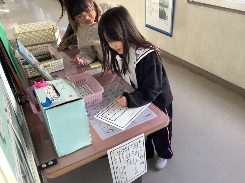 今日の昼休みには、さっそく2人の児童が参加してくれました。笑顔で作品を書き上げる姿に、見守っていた私の心も明るくなりました。