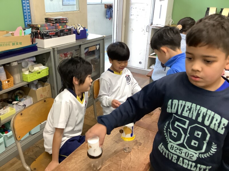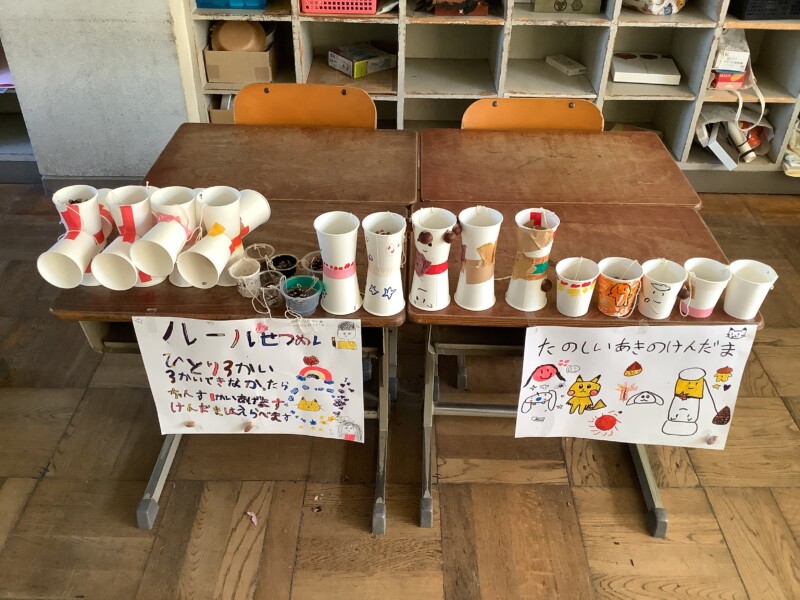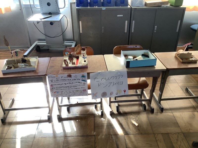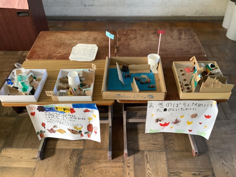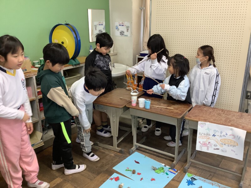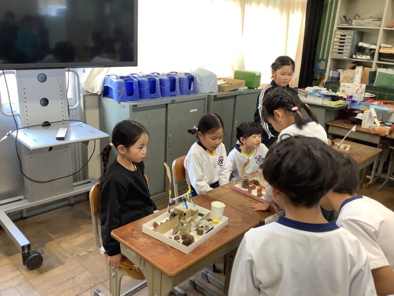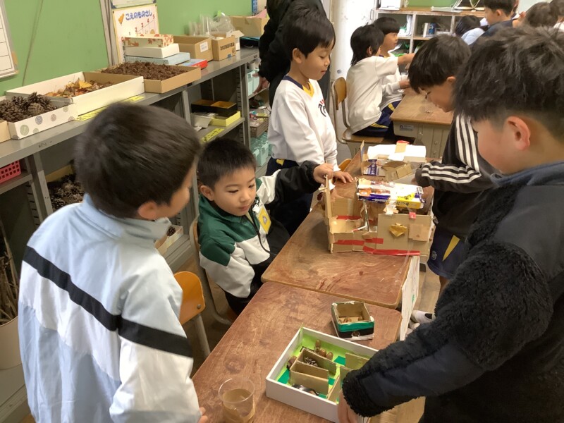 12月 17 2025 《2年生対象》力作おもちゃが大集合! あきのおもちゃランドへようこそ①〈1年生〉 1年生が心をこめて準備してきた「あきのおもちゃランド」を開催しました。 1時間目には、けん玉や迷路、魚つりなど、手づくりのとっておきのおもちゃをそろえて、2年生のみんなを招待しました。どのお店も大にぎわいで、「楽しい!」という声がたくさん聞こえました。おもちゃで遊ぶだけでなく、「どうぞ」「ありがとう」の声が行き交い、みんなの笑顔が広がったひとときでした。2年生に楽しんでもらえて、1年生も誇らしげでした。