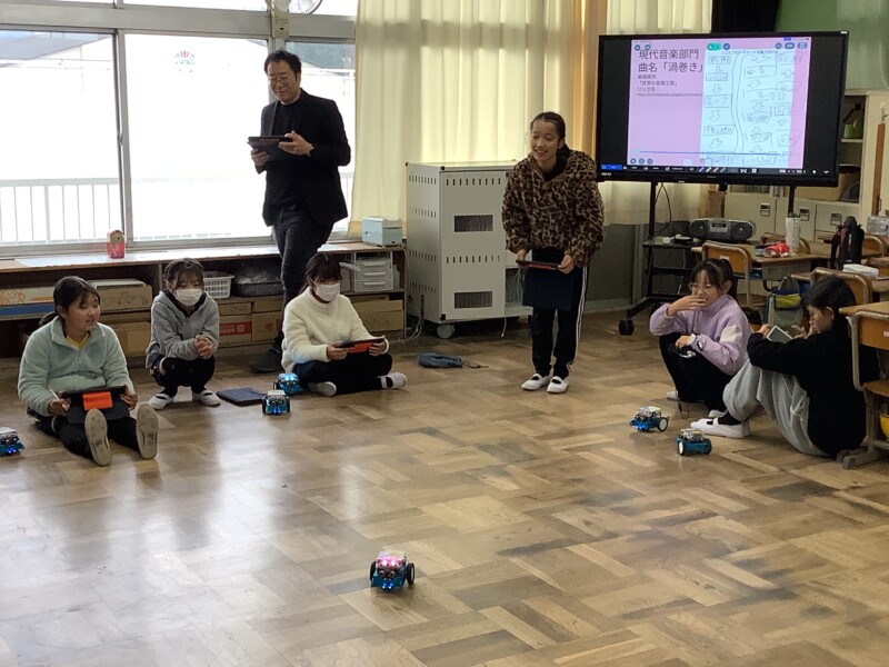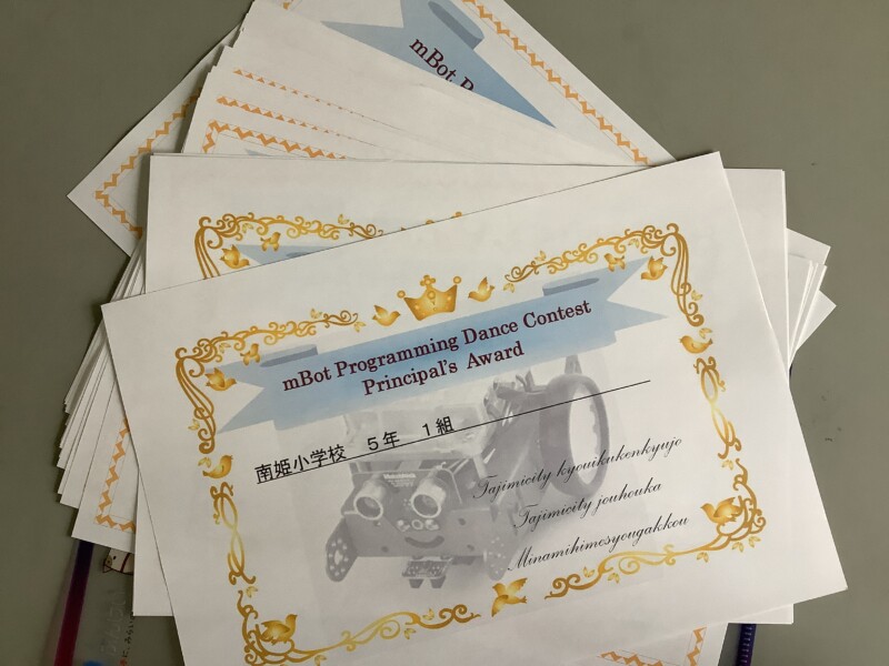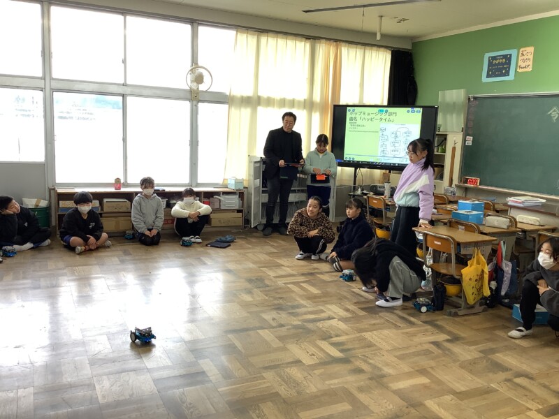 審査員である校長先生には当日まで内緒!ということで、途中経過を見せてもらえず、ずっと、ず~~っと楽しみにしてきました。そして迎えた本番当日。ロボットの動きの工夫、音楽との「ぴったり」とした連動を目の当たりにし、子ども達の能力の高さに心から驚かされました。