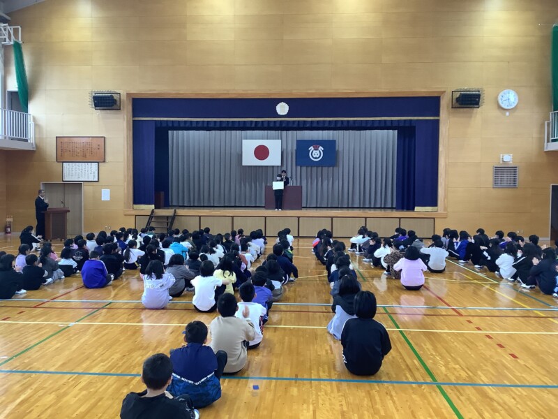新しい年を迎え、冬休みを終えた子どもたちが、元気いっぱいに登校してきました。久しぶりに学校に笑顔とにぎやかな声が戻り、体育館では冬休み明け集会が行われました。