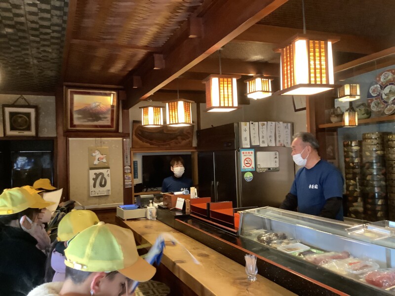 焼きそばやサンドイッチが人気の「蓑むし」さん、こだわりの新鮮な魚をにぎる「幸寿司」さん、創業から長く地域に愛される「宮嶋精肉店」さん。それぞれのお店の方にお話をしていただいたり、どうしてお店を始めたのか、どのくらい働いているのかなどを質問し、丁寧に教えていただいたりしました。