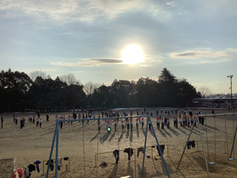 1月 13 2026 走って跳んで、一日の始まり《朝運動》〈全校〉 薄曇りの空の下、少しずつ朝日が顔をのぞかせる1日のスタート。朝の活動として、朝運動を行いました。今回は短縄跳びとペース走に分かれての実施です。子どもたちは時間いっぱい、元気よく跳んだり走ったりする姿を見せてくれました。冷たい空気の中でも、体を動かすうちに自然と笑顔が広がり、気持ちのよい一日のスタートとなりました。次回の木曜日は、活動内容を交代して取り組む予定です。