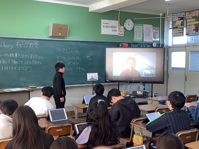 1月 20 2026 オンラインで広がる夢の世界〈5・6年生〉 5・6年生が3・4時間目に、5・6年教室と活動室に分かれてオンラインで職業講話を行いました。客室乗務員、ファイナンシャルプランナー、マジシャン、声優など、多彩な職業の方々からのお話を聞きました。声優になりたいという夢をもつ子は、憧れの仕事の話を聞きながら一生懸命にメモをとっていました。マジシャンに「緊張しない方法」を質問した子は、「失敗しても大丈夫」と考える前向きな気持ちを教えてもらいました。子どもたちは意欲的に取り組み、自分の将来を真剣に考えるよい機会となりました。