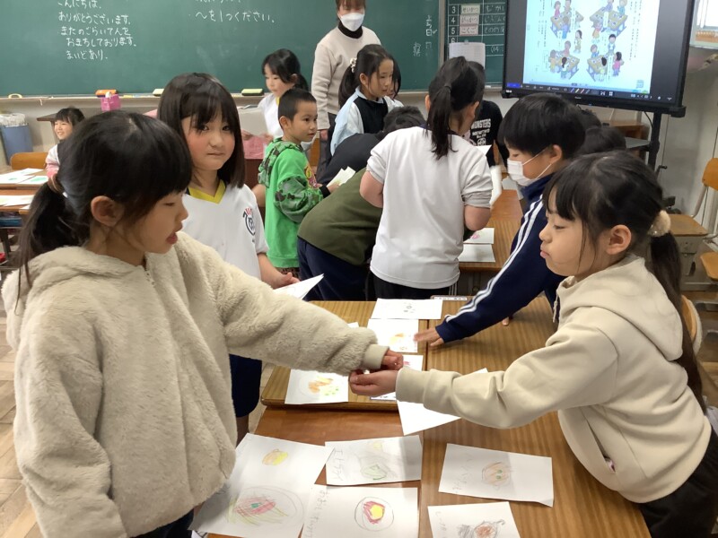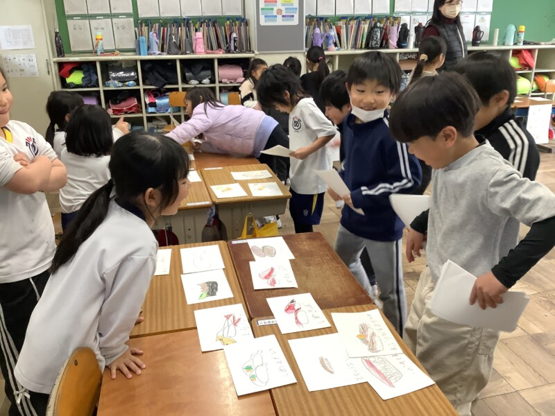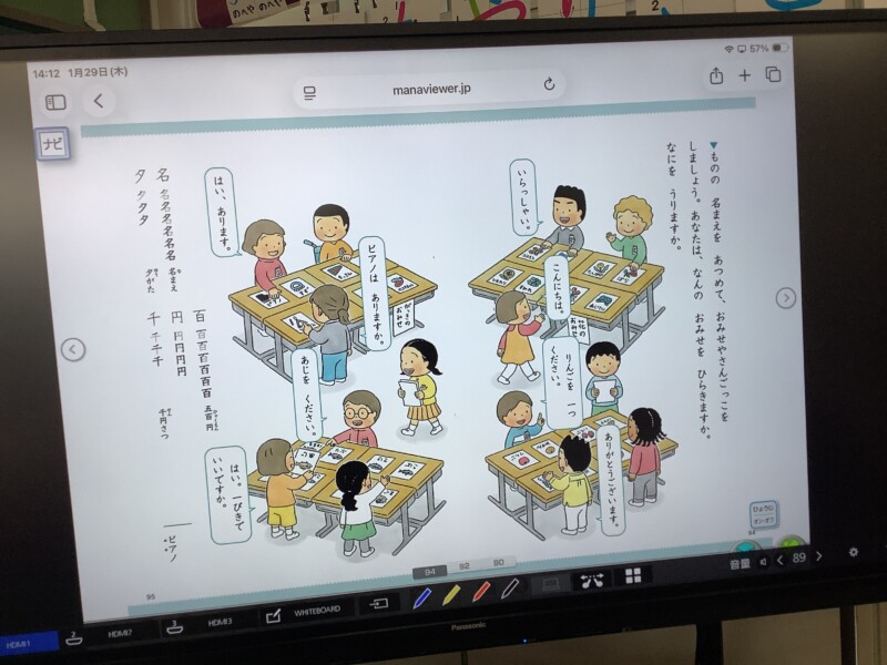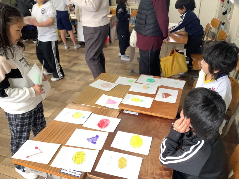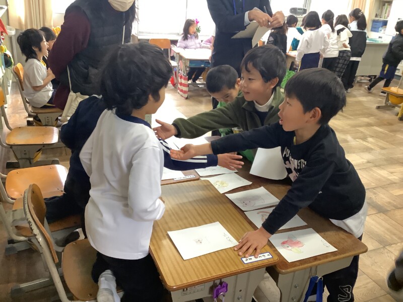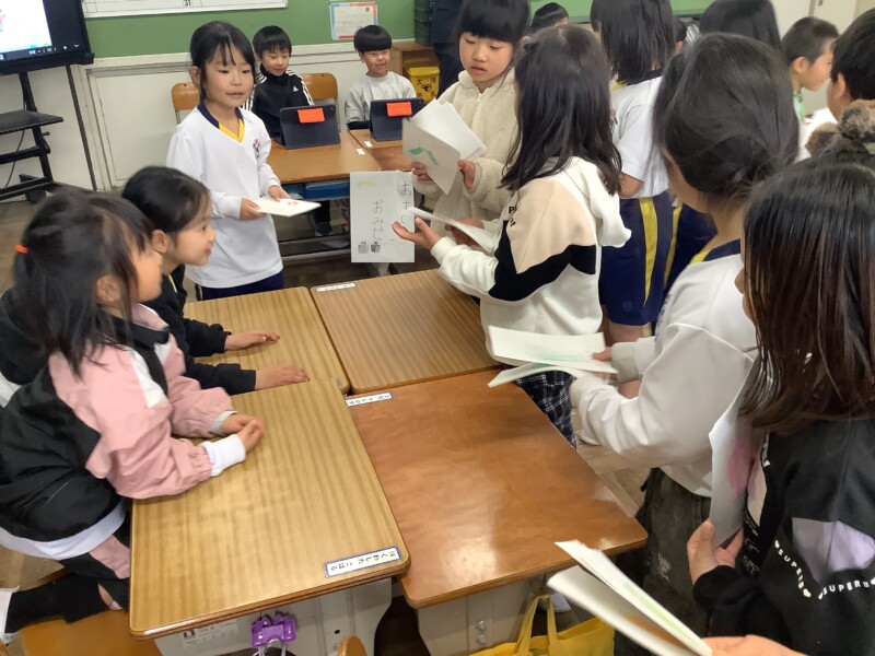 1月 29 2026 お店屋さんごっご《国語:ものの名まえ》〈1年生〉 1年生は国語の学習「ものの名まえ」で、お店屋さんごっこを行いました。子どもたちは店員さんになって「いらっしゃいませ!」と元気に呼びかけたり、お客さんになって「〇〇を1つください」と伝えたりしながら、楽しく学びました。中には「まいどあり!」と笑顔で答える子もいて、教室はとてもにぎやかでした。こうした活動を通して、ものの名前を正しく使うことや、相手に気持ちを伝える言葉のやり取りを学ぶことができました。言葉でつながる楽しさを感じた、あたたかな時間になりました。